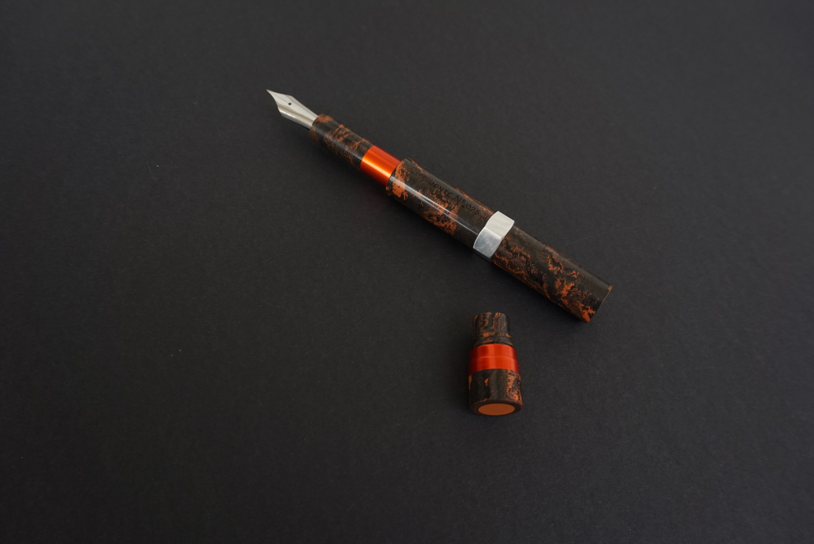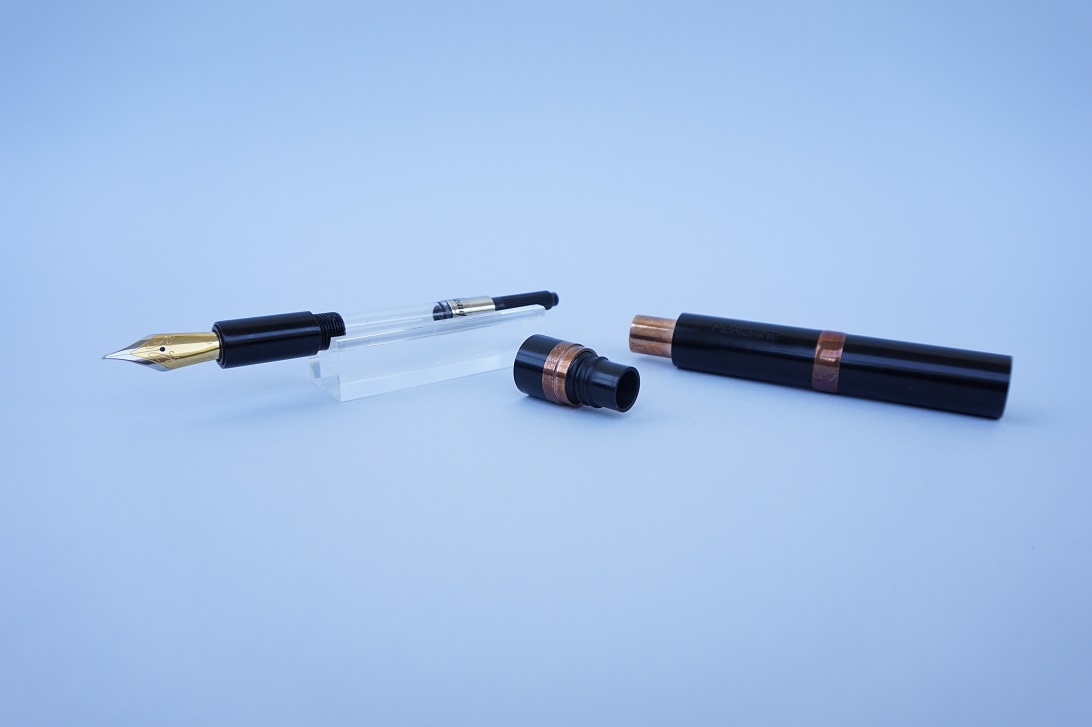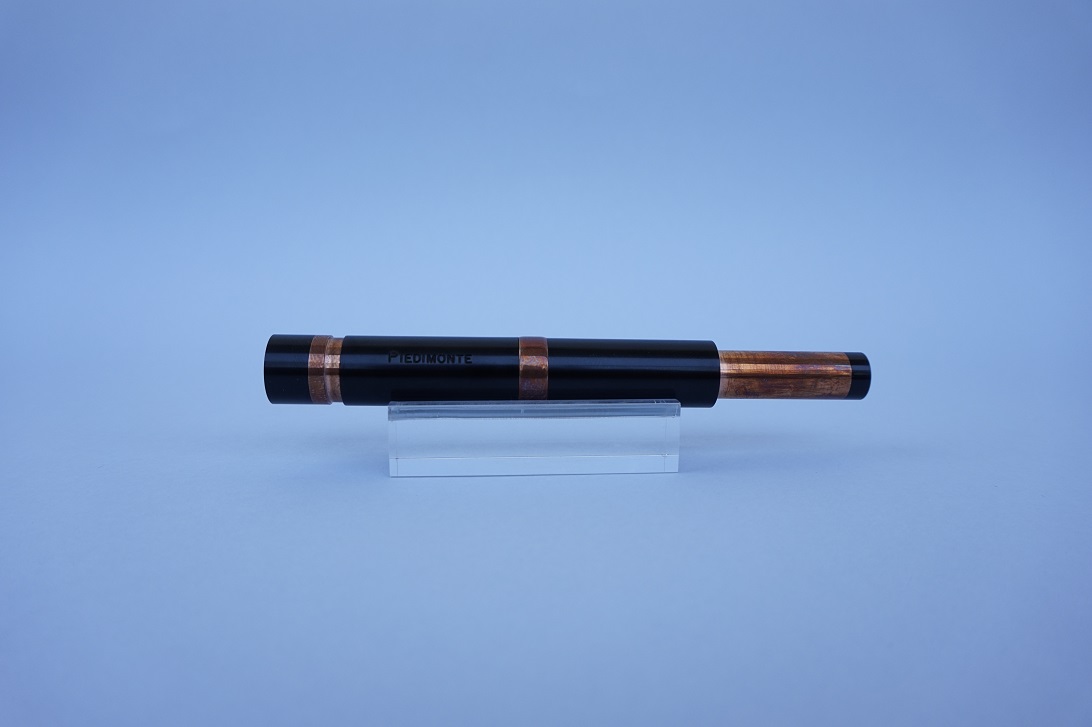 Geniale e gradevolissima nell’aspetto. Complimenti. Una volta chiusa, immagino che la sezione si blocchi contro il tappo, impedendo che la punta del pennino raggiunga il fondo di quest’ultimo e si rovini. Giusto? È disponibile per la vendita? Grazie Mauro! Esatto, il tappo di blocco ha una foratura...