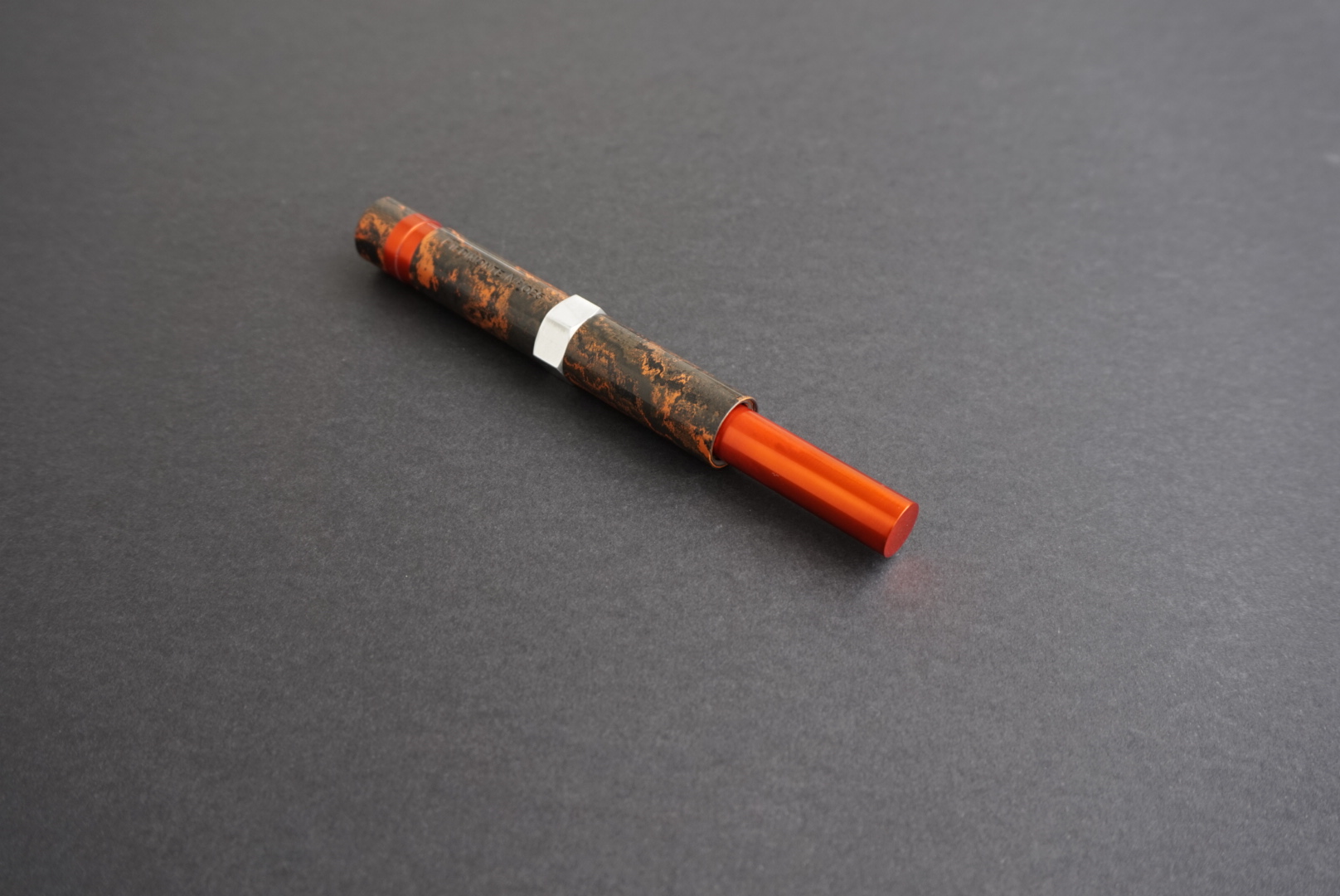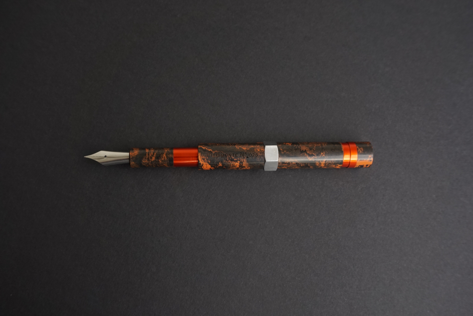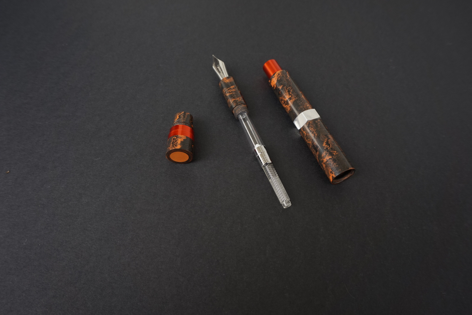 Geniale e gradevolissima nell’aspetto. Complimenti. Una volta chiusa, immagino che la sezione si blocchi contro il tappo, impedendo che la punta del pennino raggiunga il fondo di quest’ultimo e si rovini. Giusto? È disponibile per la vendita? Grazie Mauro! Esatto, il tappo di blocco ha una foratura...