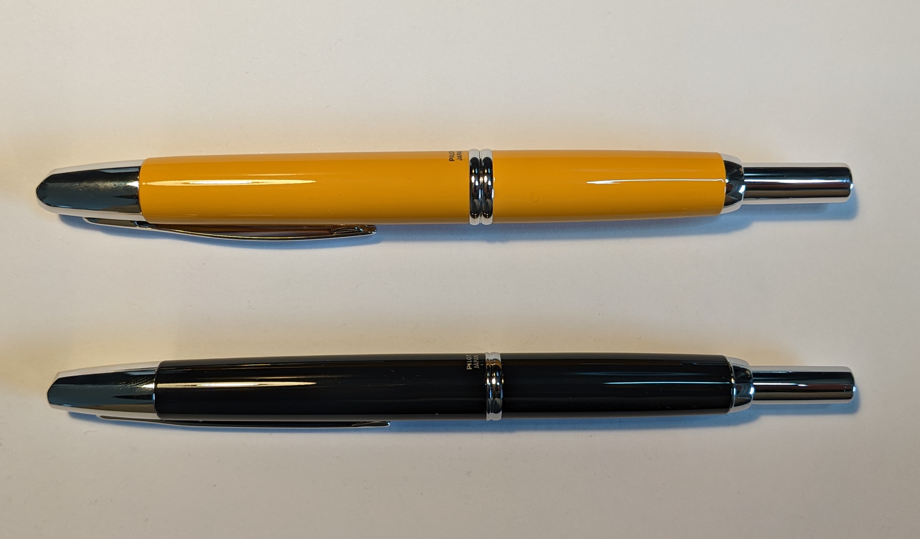 Una stilografica a pulsante.... E un portamine con il cappuccio. Domani al lavoro con questa accoppiata particolare nel taschino della camicia. Sono in po' titubante sul peso della capless, lo ritenessi eccessivo magari prenderò la decimo nera che é più leggera. E voi avete strani duetti da mostrare...