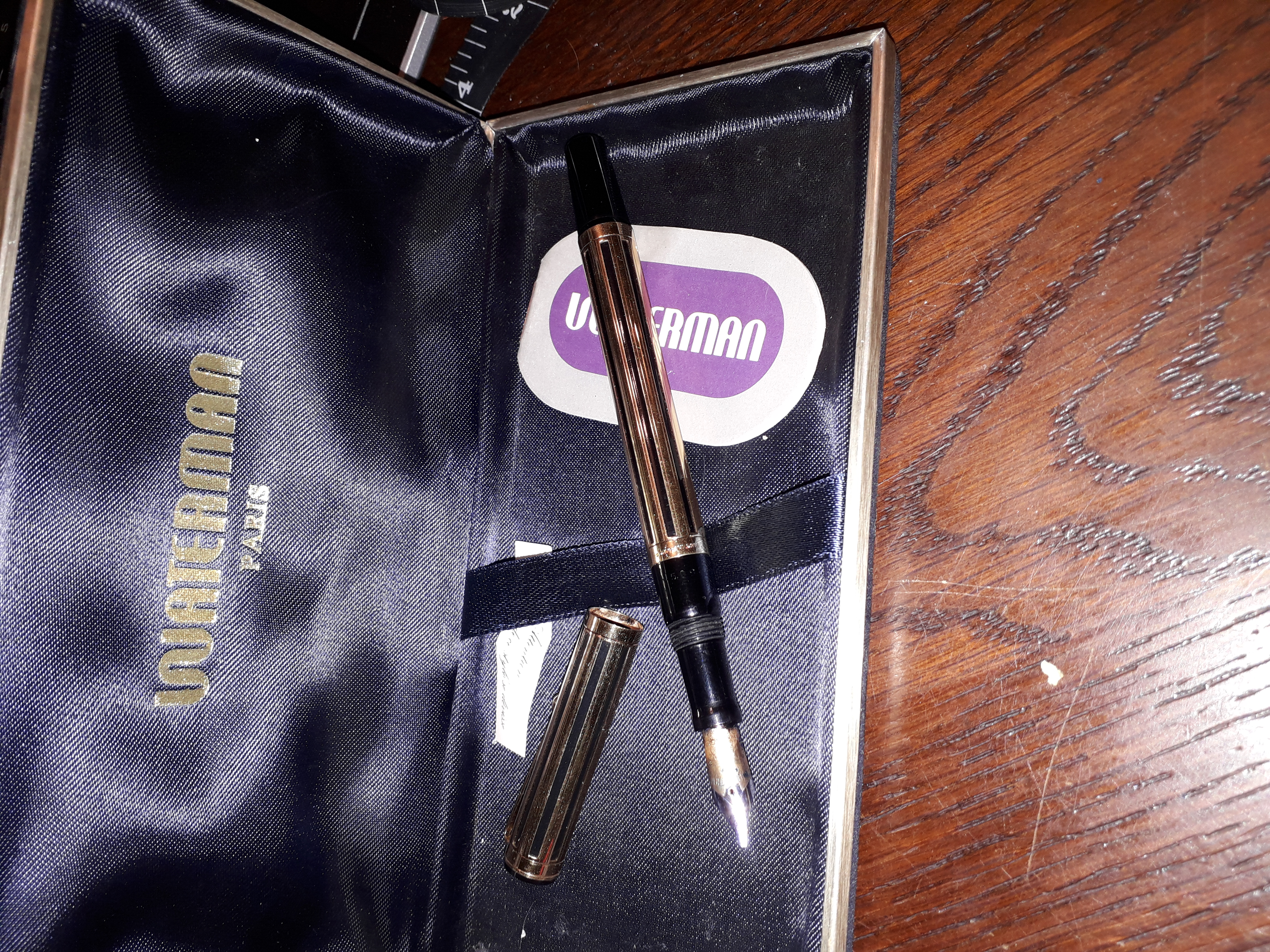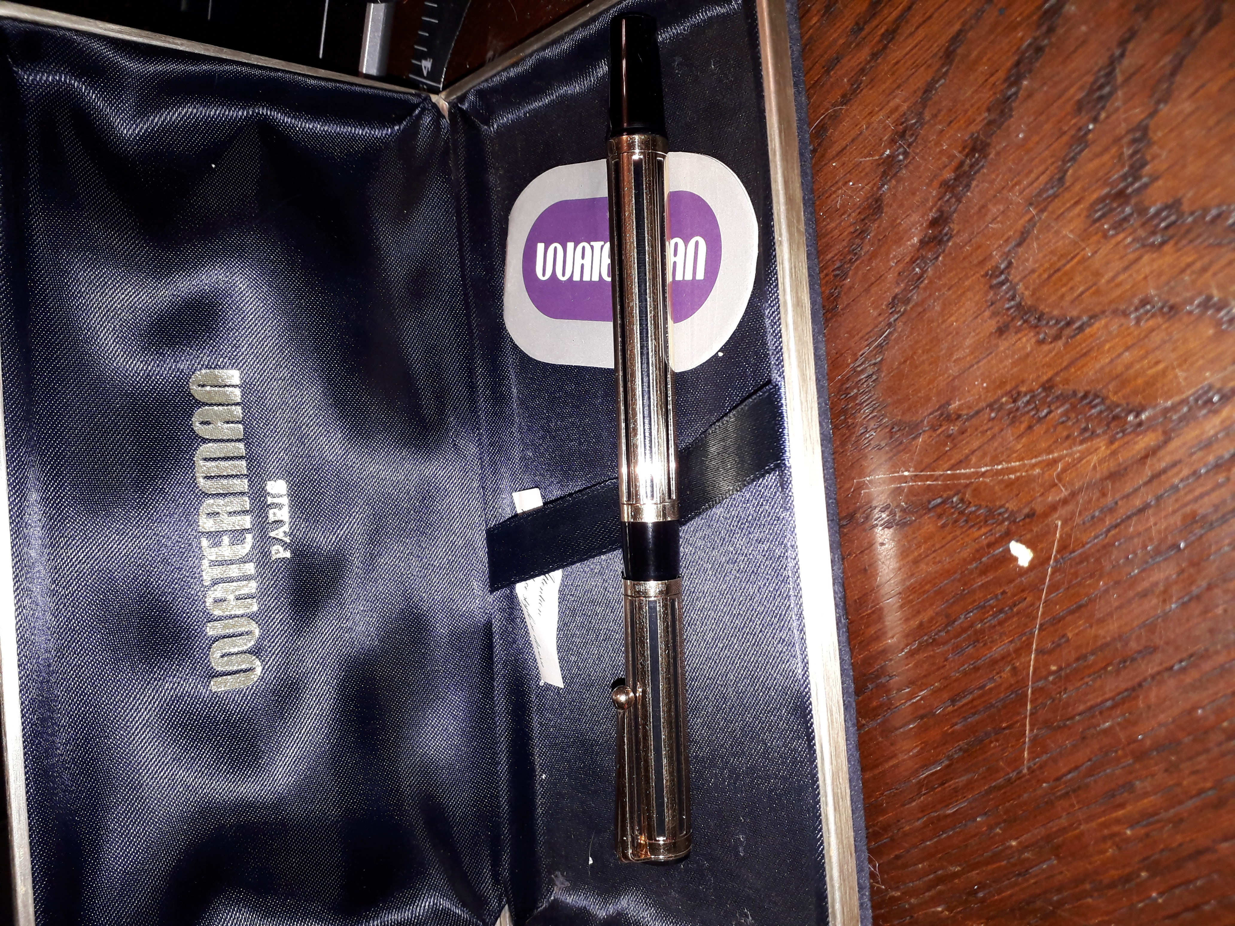 fra le penne della mia minuscola collezione ho questa waterman, ma non riesco a trovare da nessuna parte il nome del modello ed epoca. Vi chiedo aiuto.