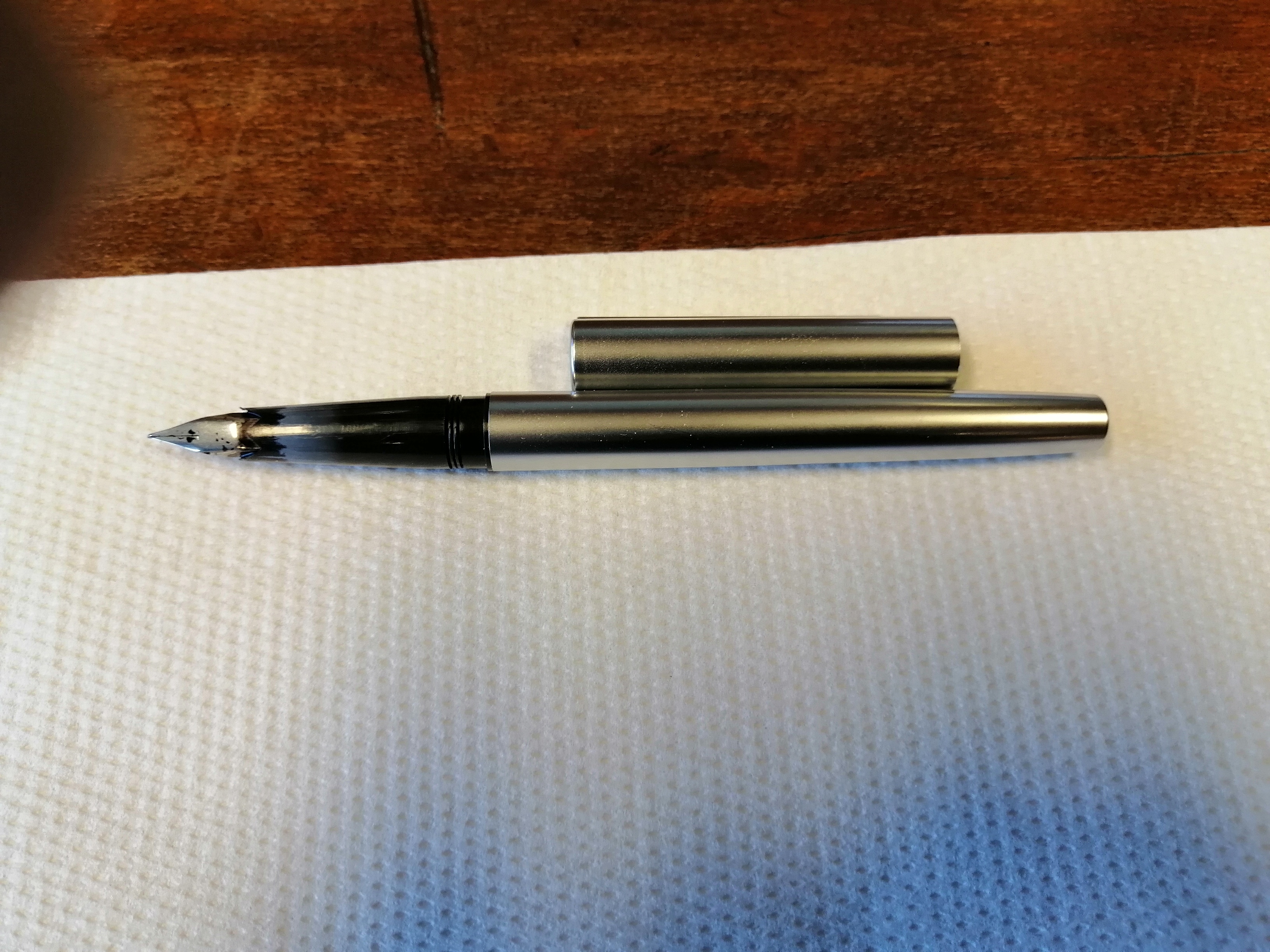 La penna mi sembra stia bene, a parte ... a parte l'alimentatore che si tira fuori facilmente, troppo facilmente; diciamo che a volte mentre si scrive esce da solo; non so come posso migliorare, o risolvere la cosa; per esempio, se la gomma viene bagnata di acetone si gonfia un po', prima di disfarsi; esiste qualcosa di simile per la plastica, o qualche altro metodo?