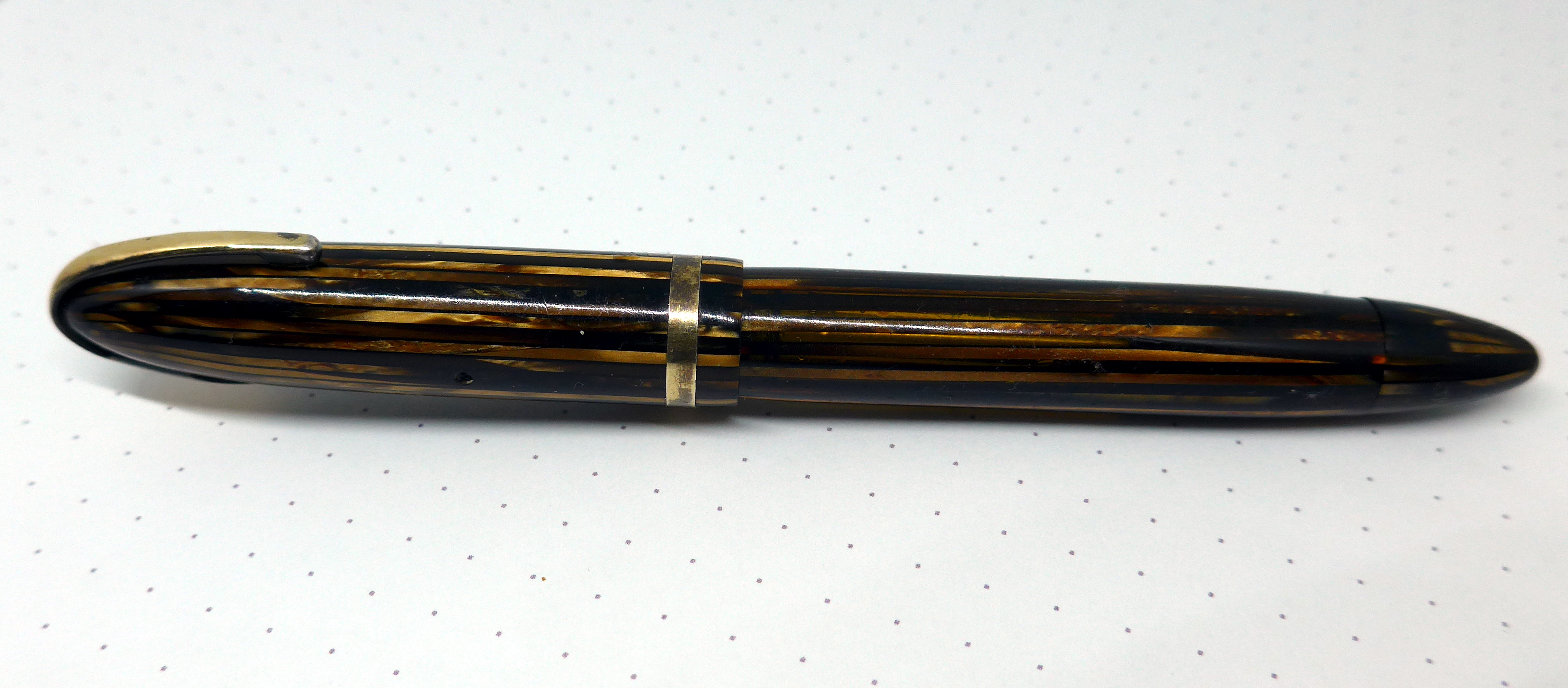 Questa qui sotto è una delle rare foto che ho trovato in rete di una penna simile alla mia. La principale differenza che noto, è che il mio "cono" mi sembra sia più largo: il suo diametro esterno è uguale a quello interno della sezione.