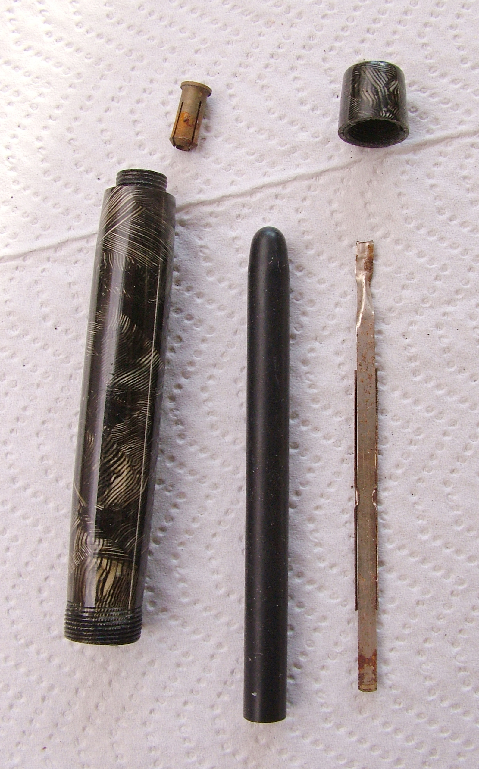 All'interno vi è il controcappuccio di cui può anche essere evitato l'estrazione, dato che la testina si avvita sul cappuccio. serve solo per la tenuta dell'aria e per non far piegare il pennino avvitando eccessivamente, funzioni fondamentali ma non per lo smontaggio.