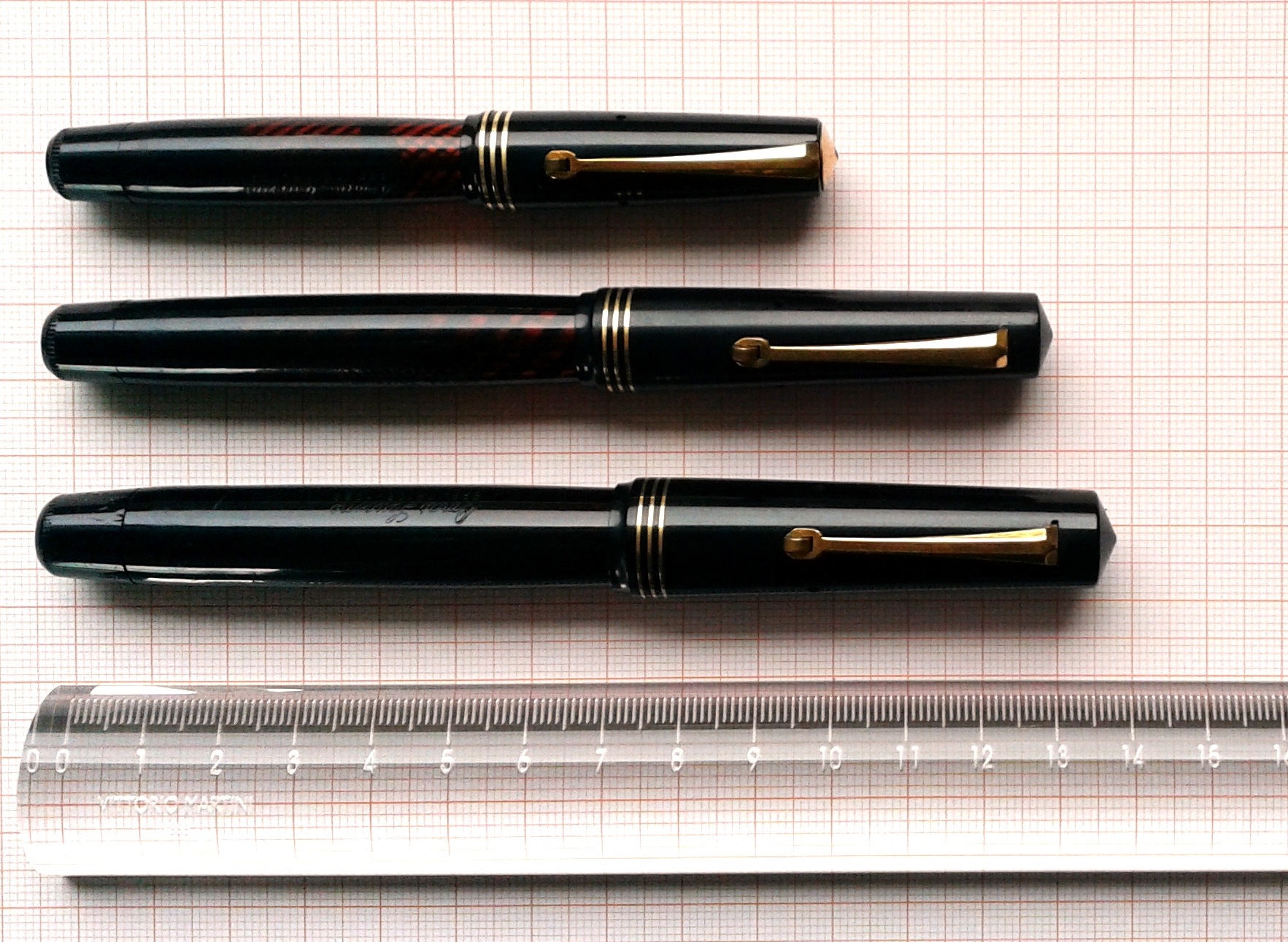 Fusto: cm. 12,5 (con pennino esposto di cm. 2,3) Con cappuccio calzato: cm. 17 (con pennino esposto di cm. 2,3) Diametro massimo (agli anellini): mm. 15,5