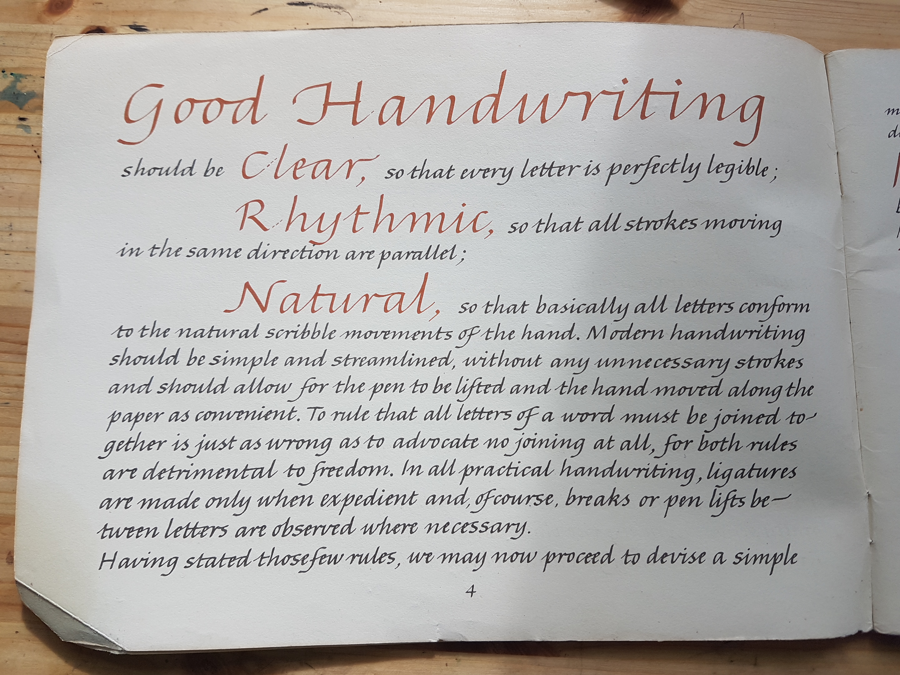 A parte il fatto che il senso del discorso mi sembra sia quello di elencare le caratteristiche che dovrebbe avere un modo di scrivere moderno (modern handwriting), anche dando per buono che con il termine Modern Hand si voglia riferirsi proprio al modello proposto (cosa possibile) questo mi sembra un corsivo derivato dall'Italico (come quello proposto da Getty e Dubai) di cui la cancelleresca è lontano antenato ma che cancelleresca non si può definire. Parere personale e pertanto opinabile.