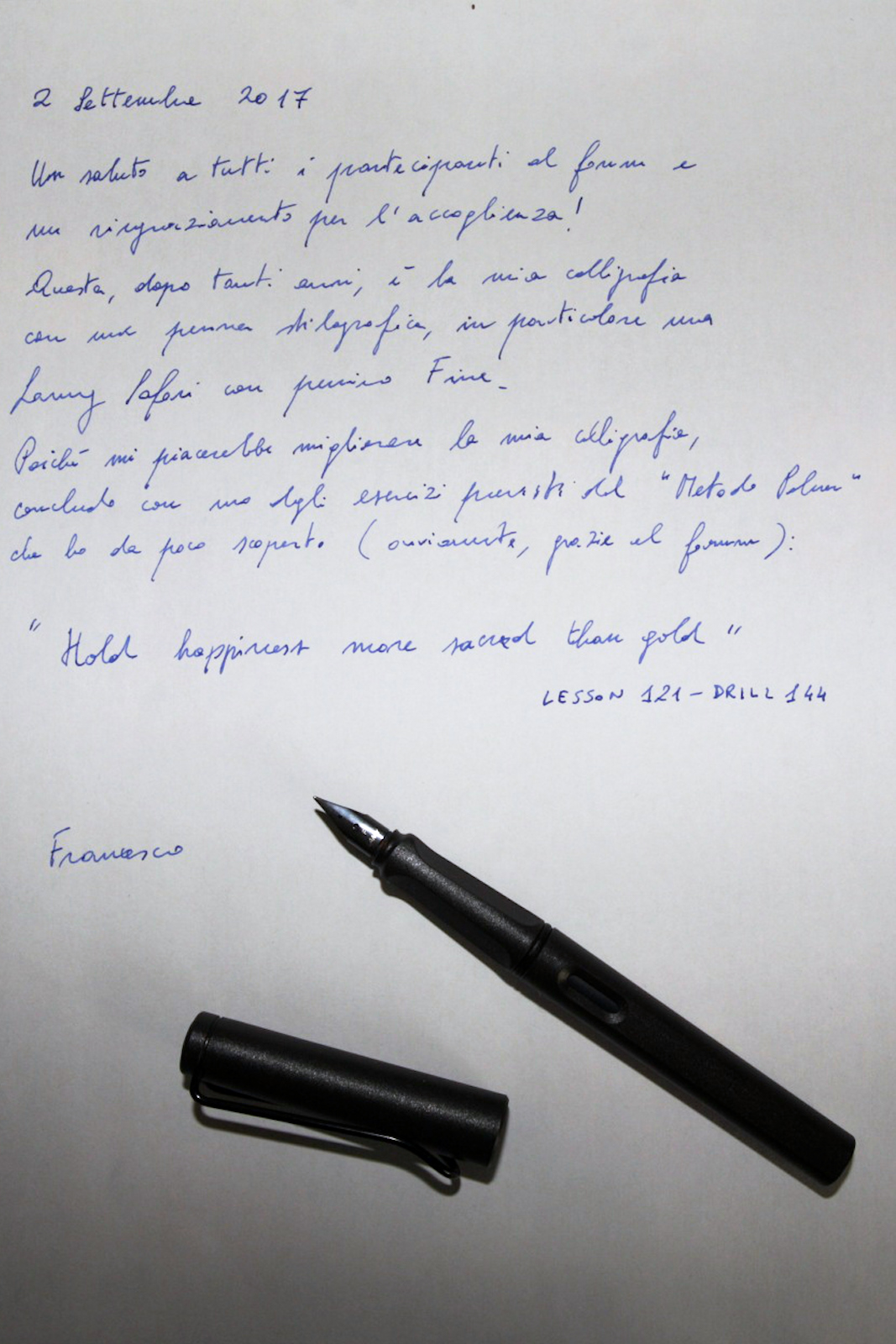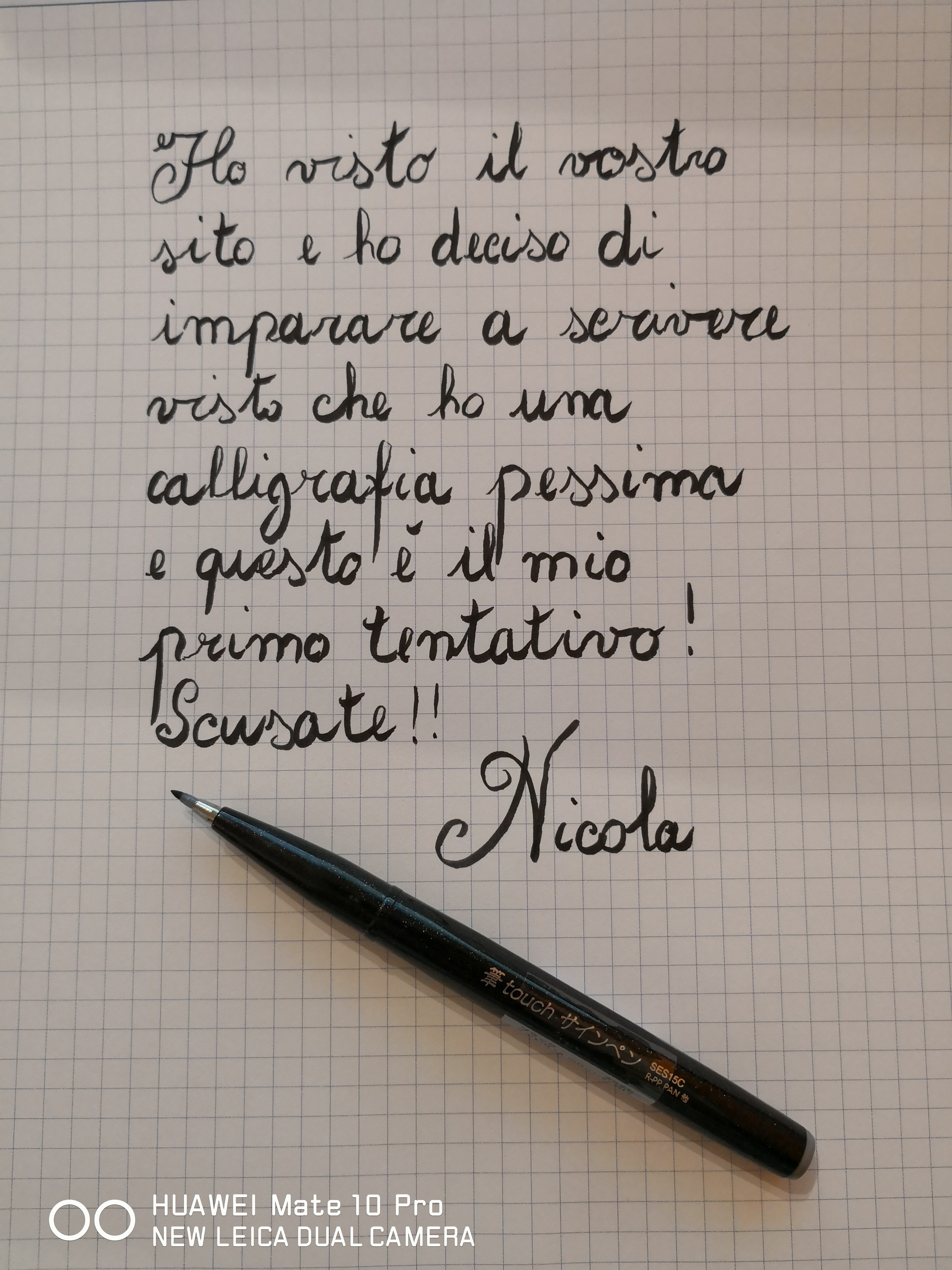 Scusate la pessima scrittura, ma ho comprato una penna, non stilografica (brush) sotto consiglio della cartoleria 48h fa e questo è il mio primo tentativo.... A breve vorrei prendere una Stilografica ma non so quale...