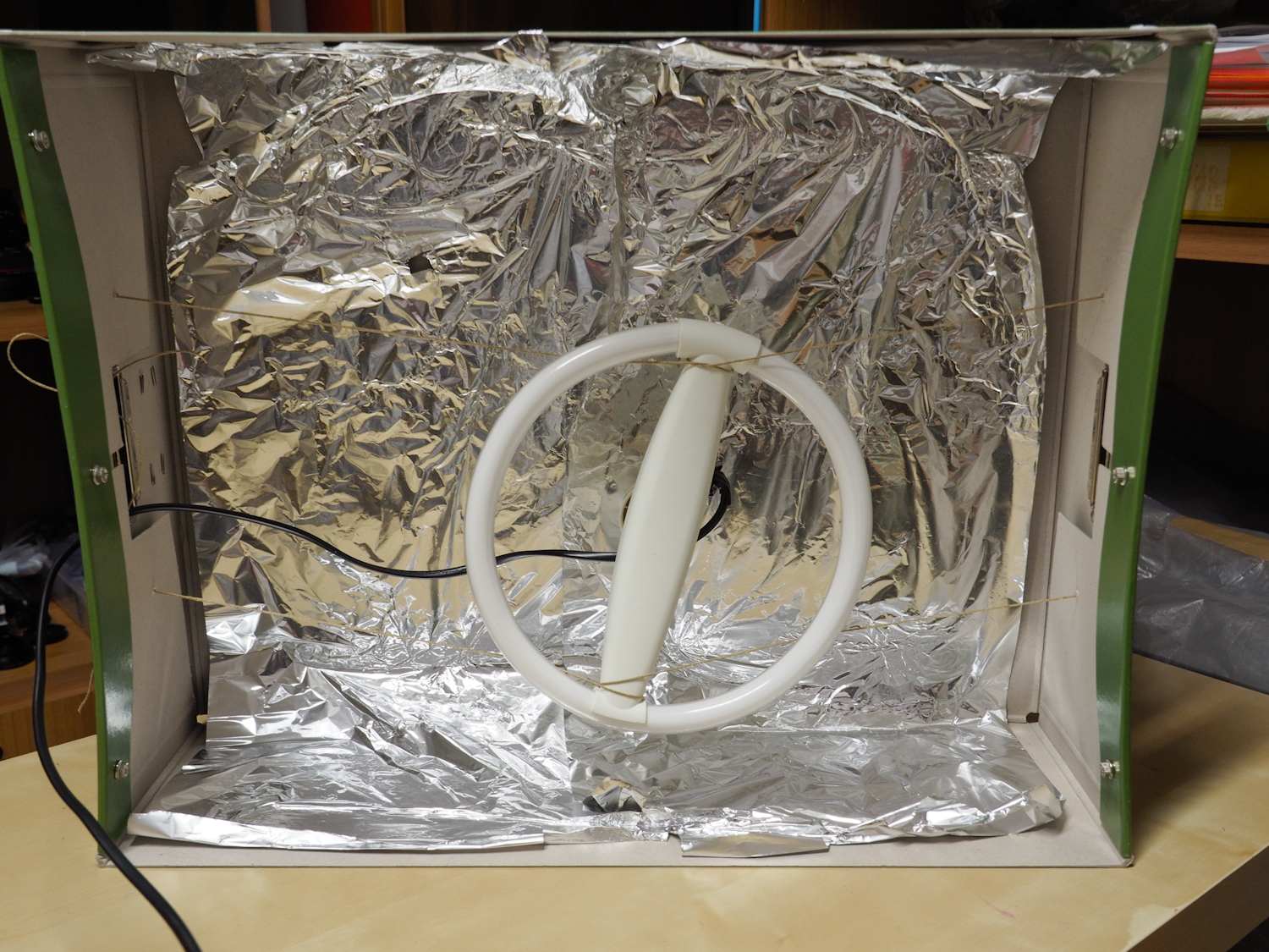 Ho scelto una circolina con punto di bianco simile a quella del banchetto, e pur non essendo corrispondente come temperatura colore, c'è da considerare che è una luce molto leggera per l'appunto di schiarita. La utilizzo per avere un "negativo" un poco più pronto piuttosto che recuperare pesantemente in post produzione.
