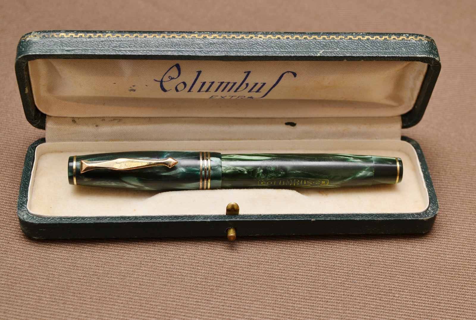 La mia opinione è che il pennino non sia l'originale: non ho notizia di pennini Columbus che non fossero identificati dal marchio, stampatello o corsivo che fosse la scritta.