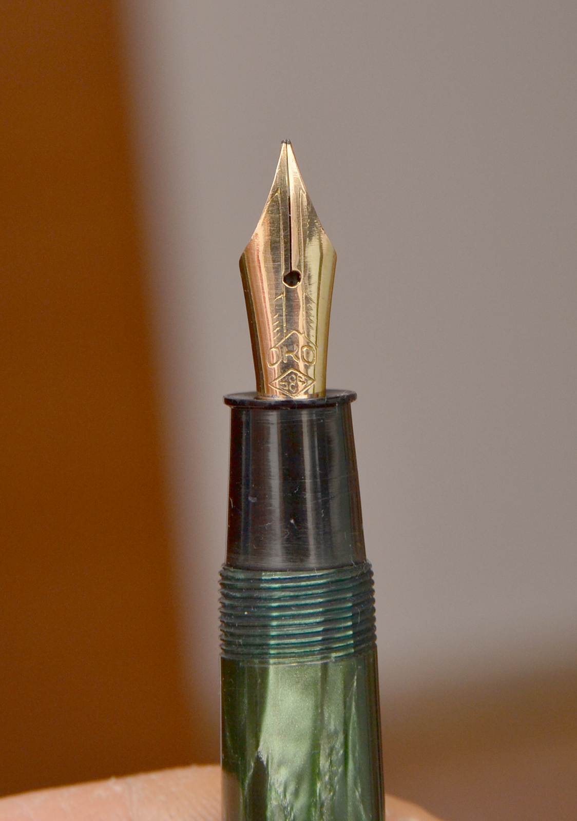 Il pennino non porta nessun marchio, solo una freccia e la scritta oro e la caratura 585 in un rombo, sbaglierò ma credo sia il suo.