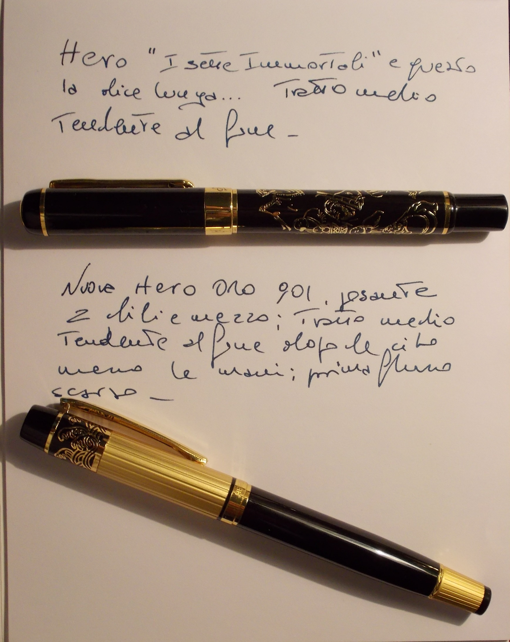 Gli inchiostri usati sono, nell'ordine: Iroshizuku Shin Yoki, Marlene Brown, Parker Blue-Black, Waterman Absolute Brown, Pelikan 4001 Blue Royal, Pelikan 4001 Nero Brillante.
