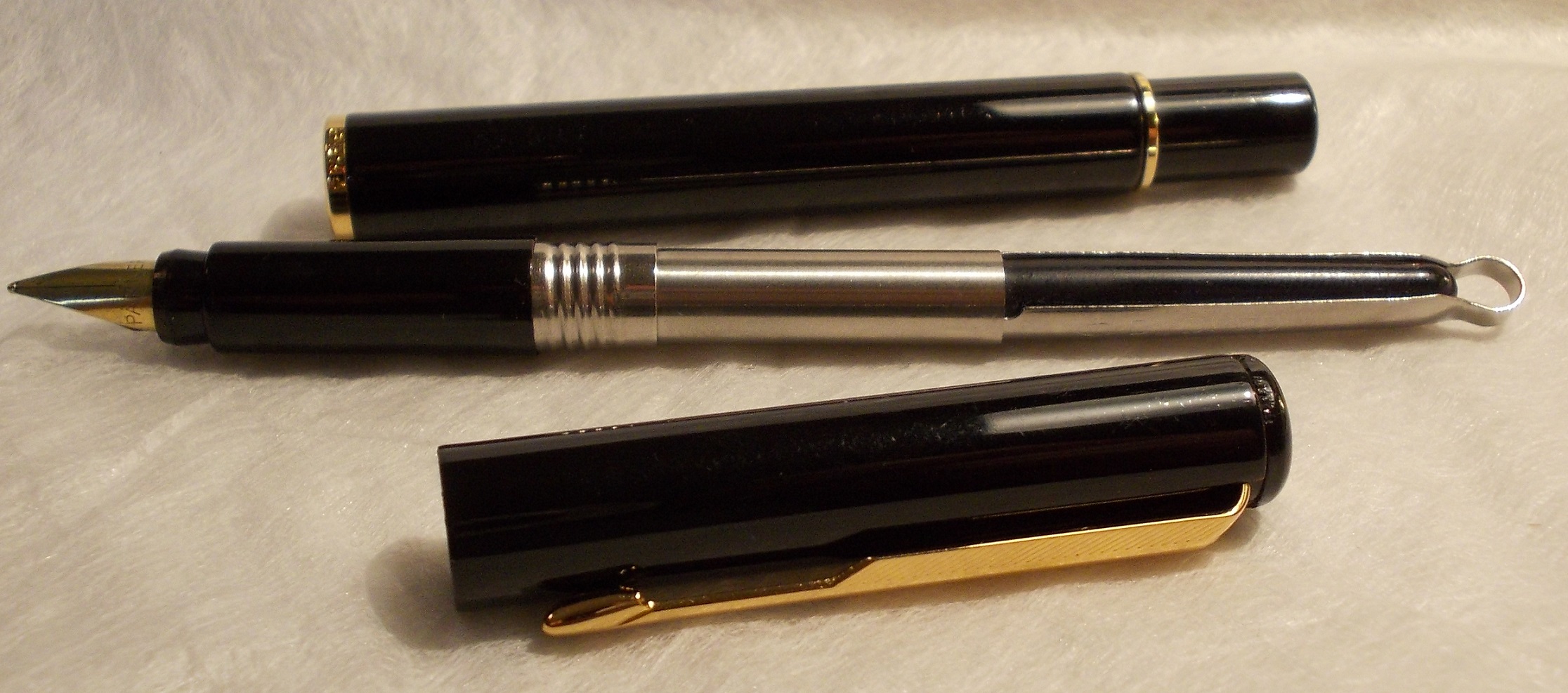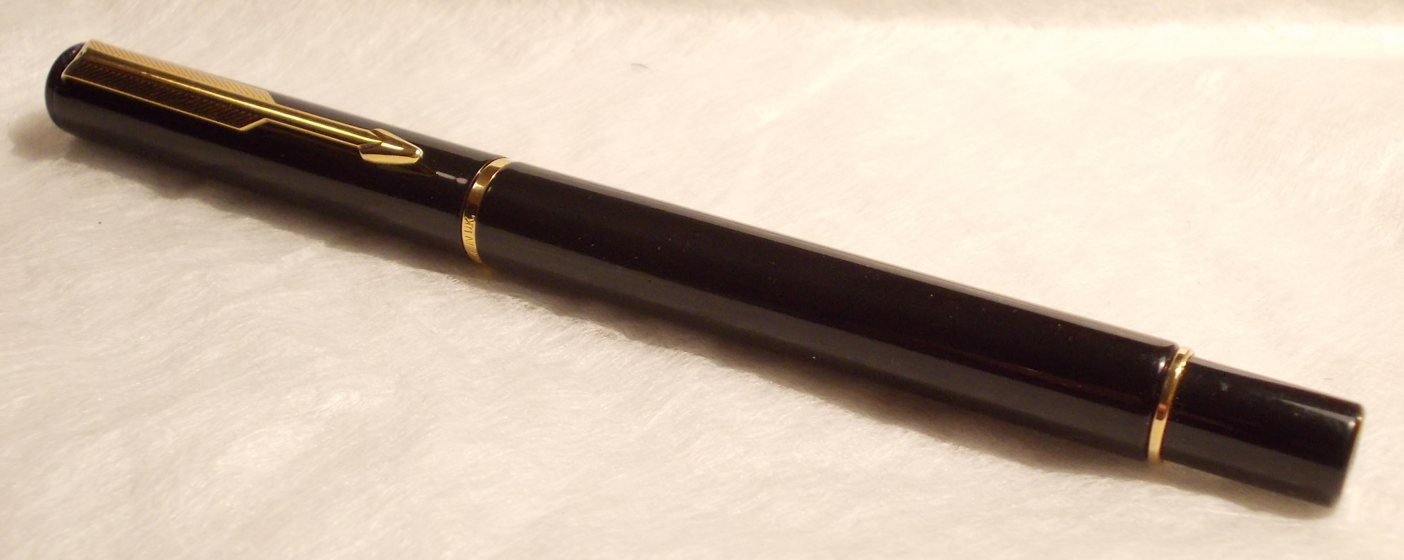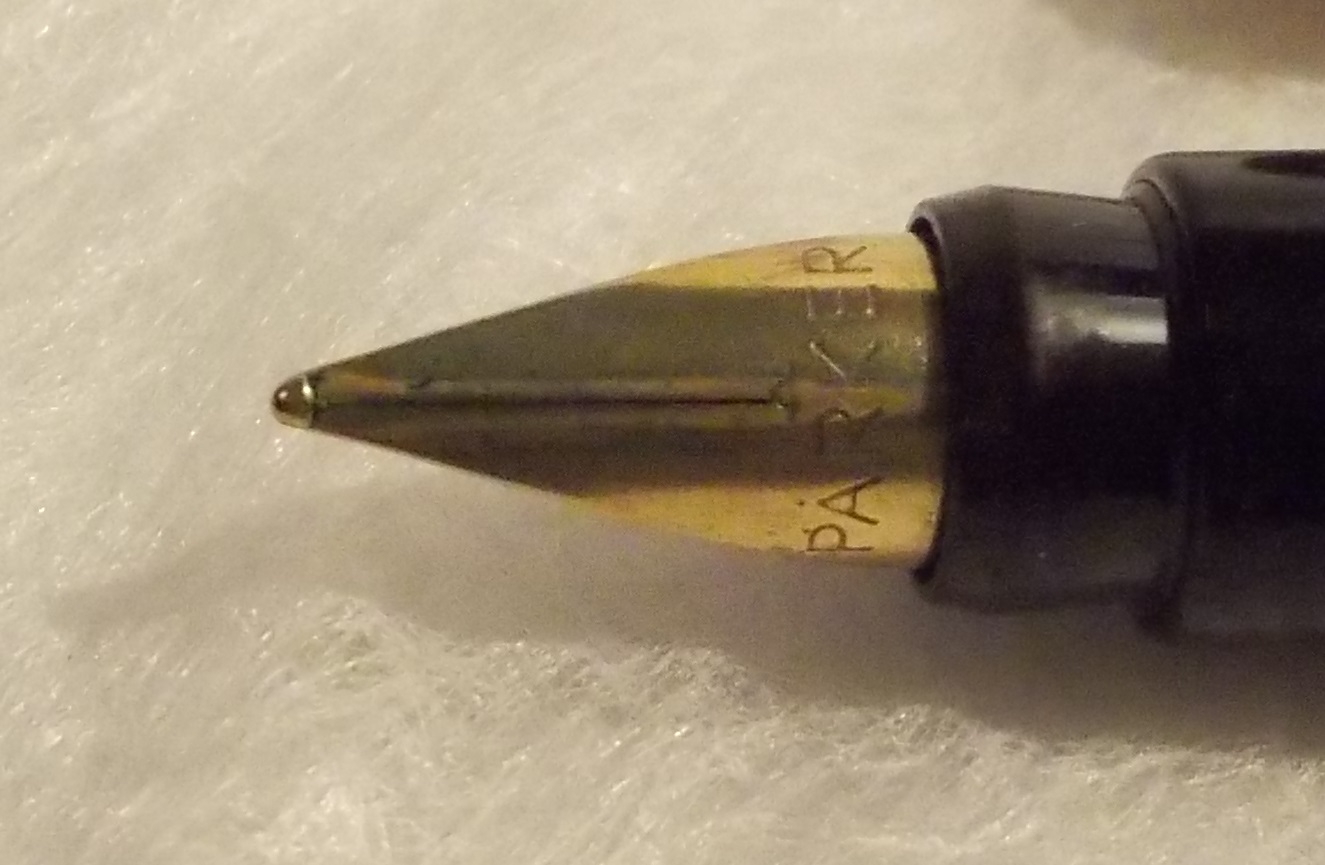 Il pennino è placcato in oro, dal taglio medio ed è uguale per forma e stile a tanti altri Parker: piccolo, quasi conico e senza foro di sfiato.