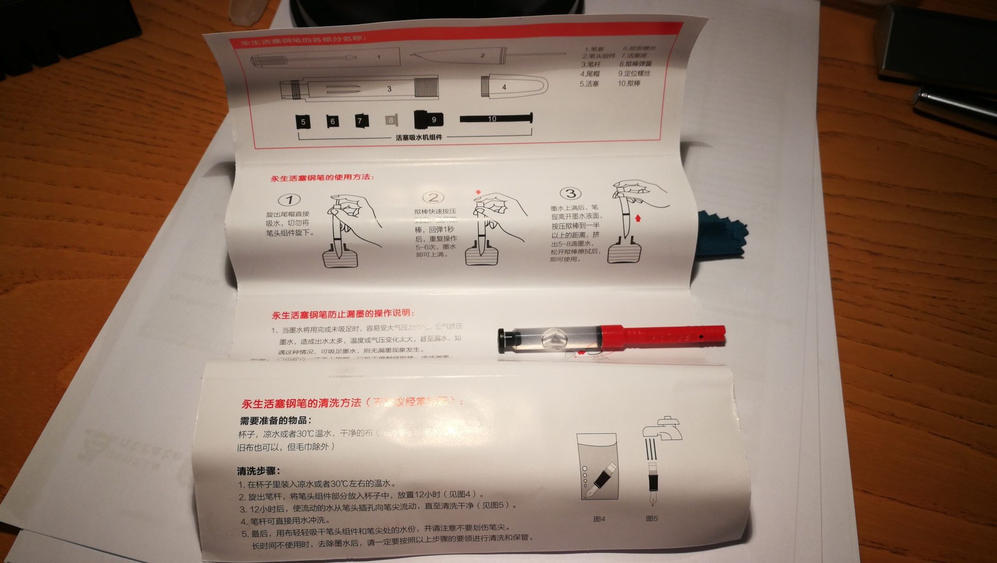 La penna in oggetto scrive molto bene e funziona perfettamente. Non avevo molta fiducia in questa penna (se non fosse una vacumatic non l'avrei presa) e invece sono rimasto piacevolmente sorpreso, direi proprio che si tratta di una delle migliori penne cinesi. A mio avviso il rapporto qualità prezzo è elevato, nonostante le rifiniture non eccellenti ma comunque buone, considerando il costo di una decina di euro (spedizione inclusa) con tanto di grasso in dotazione.