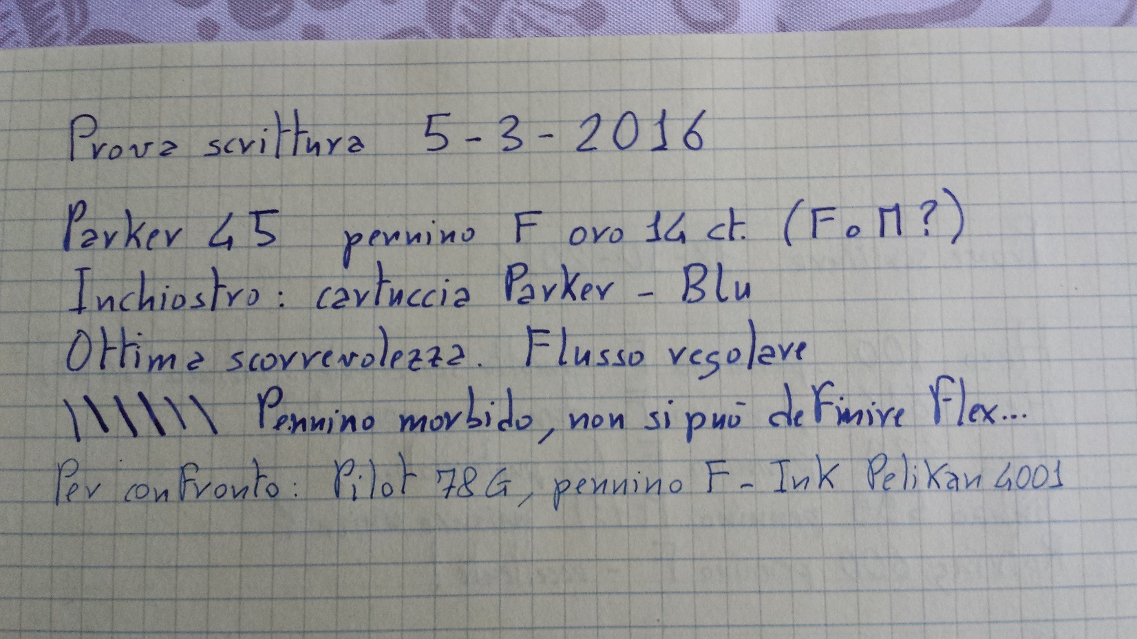 In effetti ero interessato all'altra stilografica della coppia, ma dopo avere provato a scrivere con questa 45 il mio interesse nei suoi confronti é aumentato di molto.