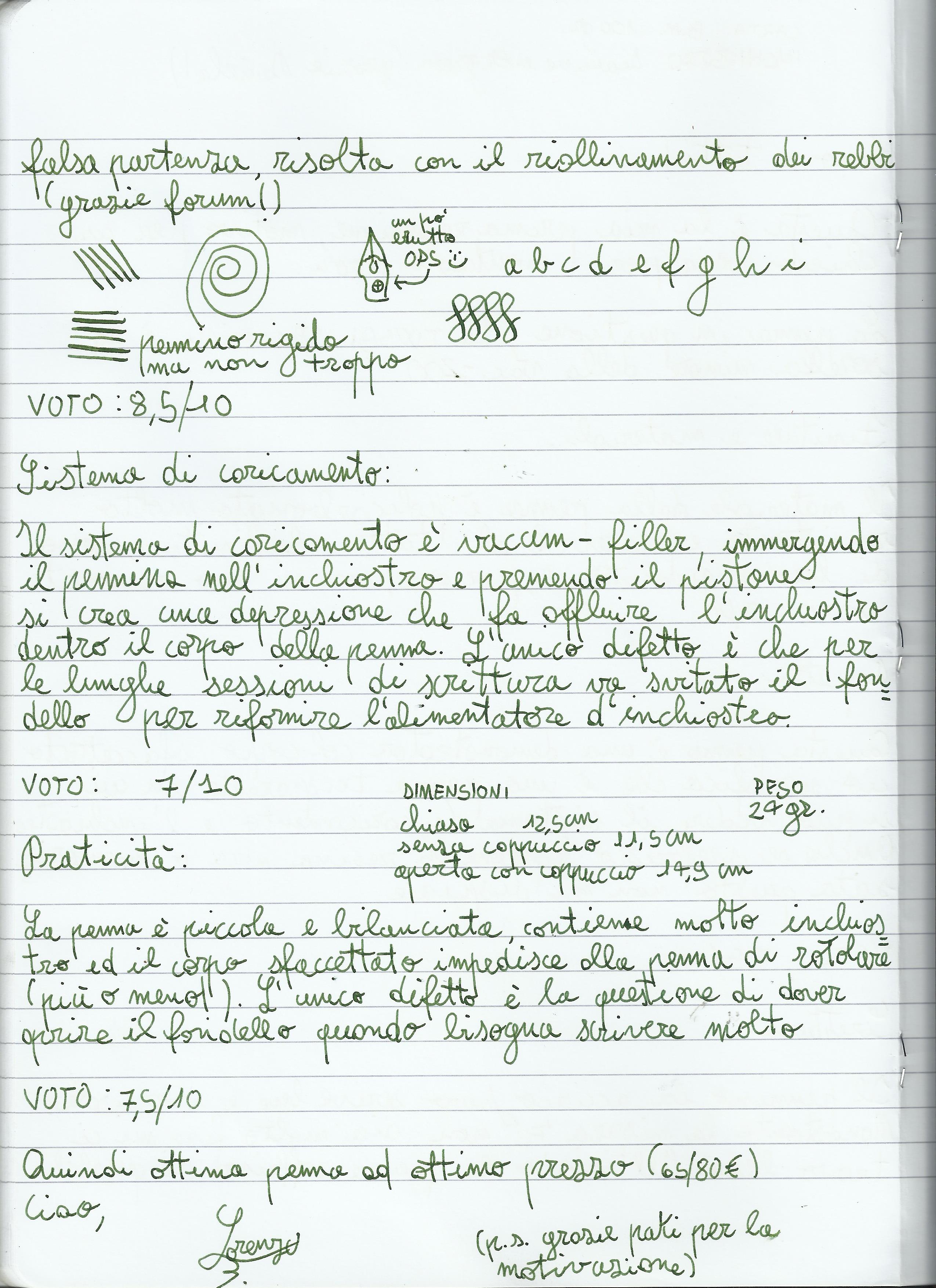 Complimenti Lorenzo, ottima recensione! Dalle immagini sembra cilindrica invece solo ora ho scoperto che è sfaccettata. Senza dubbio è una delle penne più interessanti sul mercato.