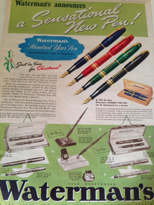 L'ultima foto delle vintage sembra presentare la garanzia relativa ad una penna (la 100 Year) sotto una penna diversa (una normalissima Waterman 52 a levetta)