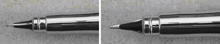 NOTA: il pennino è una lamina piatta tagliata come un pennino normale. molto profondamente e con l'altro taglio meno approfonito entro lo spessore della lamina.