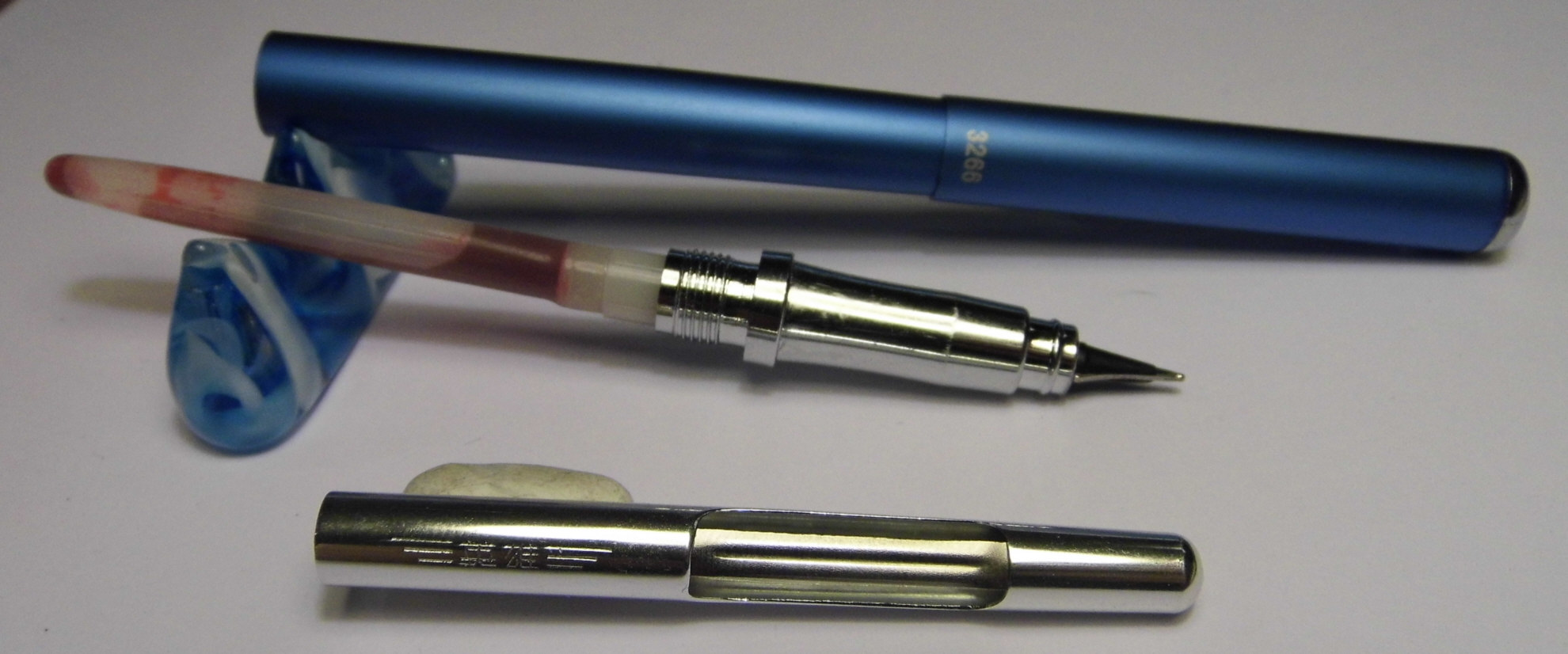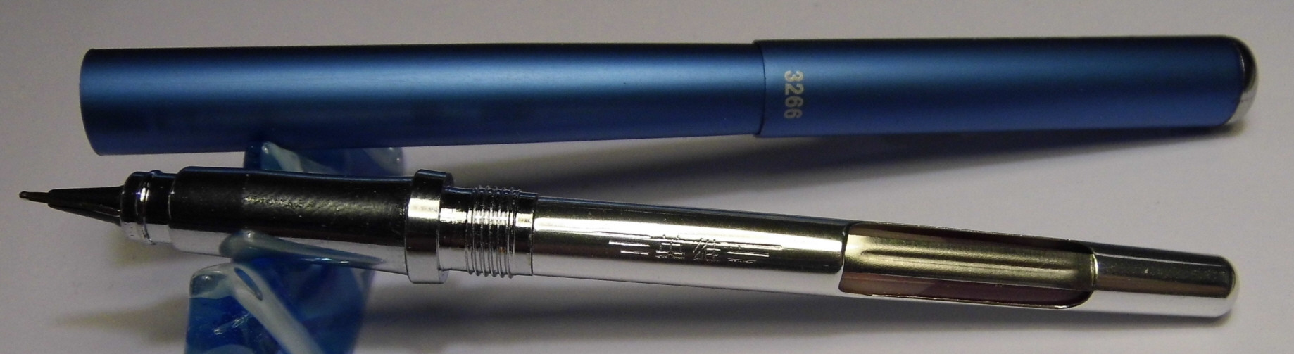 La differenza tra 3266 e 001 è che quest’ultima ha misure leggermente diverse (questione di millimetri in meno), un cappuccio che termina ad ogiva e nella parte terminale del fusto una sorta di incavo. La Hero 3266 è quasi cilindrica (solo un minimo affusolamento nella parte terminale del fusto in modo da consentire l’innesto del cappuccio), cappuccio e fusto terminano con una parte cromata su cui è impresso il logo della ditta.