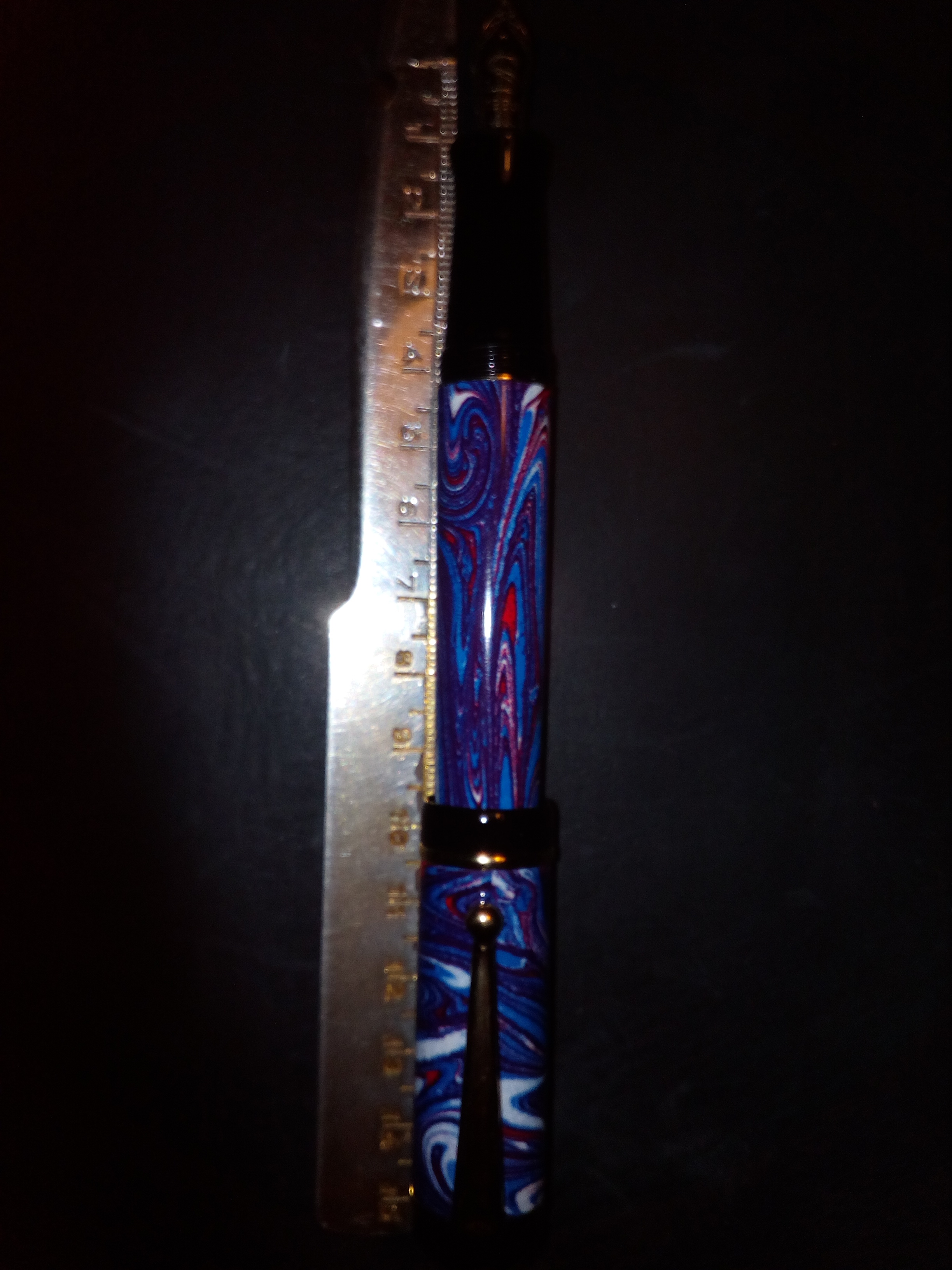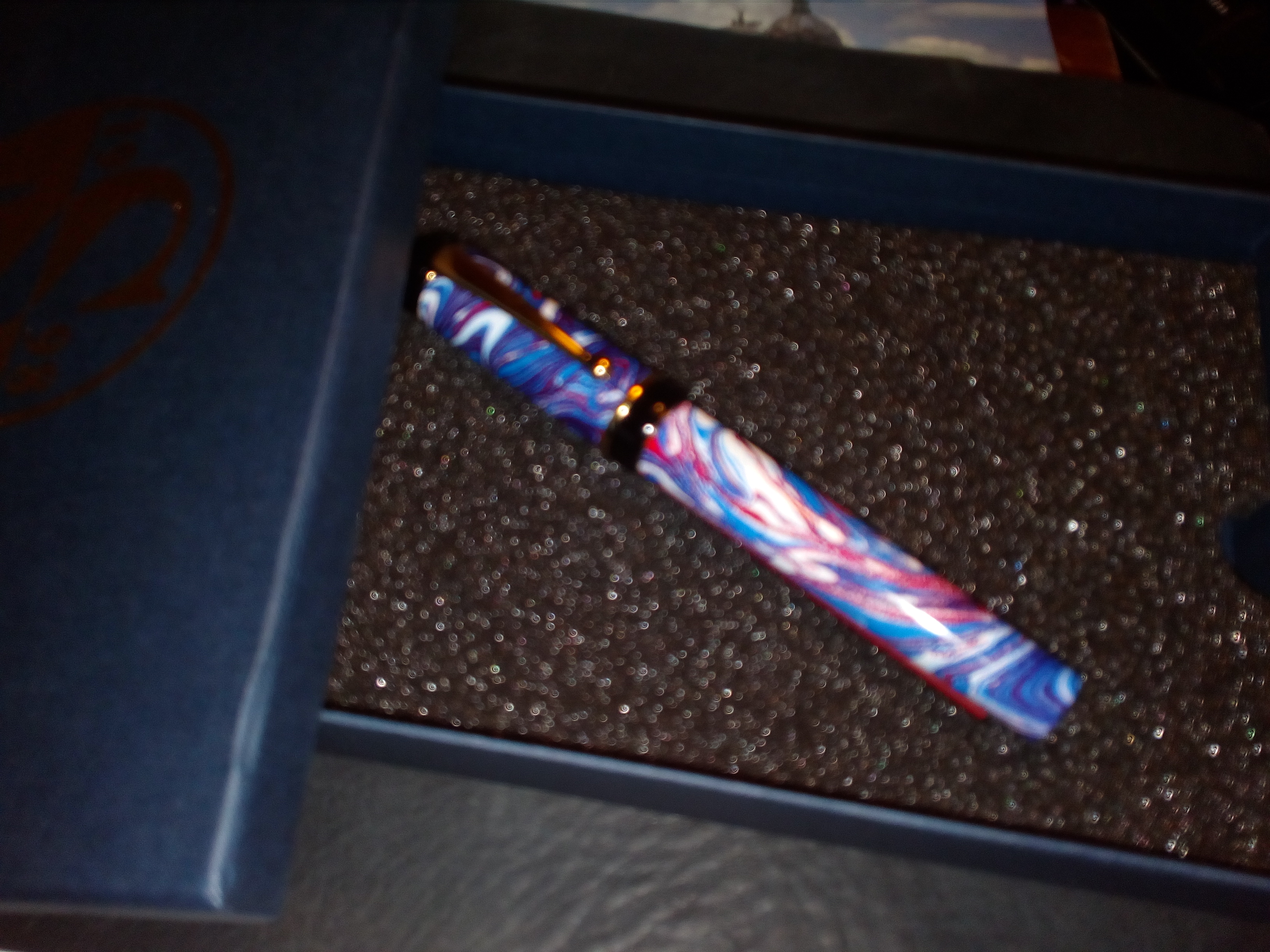 Il disegno è stampato, ma non cede in brillantezza con il tempo (lo dimostra la penna precedente dopo un anno d’uso e di esposizione). Unica (piccola) delusione: i colori del fusto e del cappuccio me li aspettavo, secondo la foto vista sul sito, più pastosi, più resinosi, e invece dal vivo sono più freddi (si vede l’origine digitale del disegno).