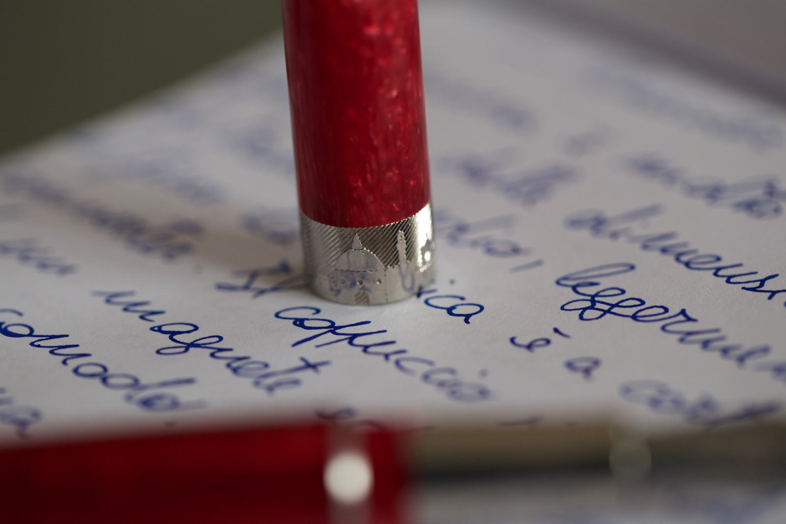 Ho dunque virato su un Extra-Fine, decisamente più sottile, sebbene non troppo, ma scorrevole e con un corretto feedback sul foglio di carta: in definitiva una bellissima penna in quanto a estetica, materiali e tecnica costruttiva, non ugualmente mirabile per ciò che è legato all'ottimizzazione dei pennini, almeno per quanto riguarda le mia abitudini e il mio piacere di scrittura.