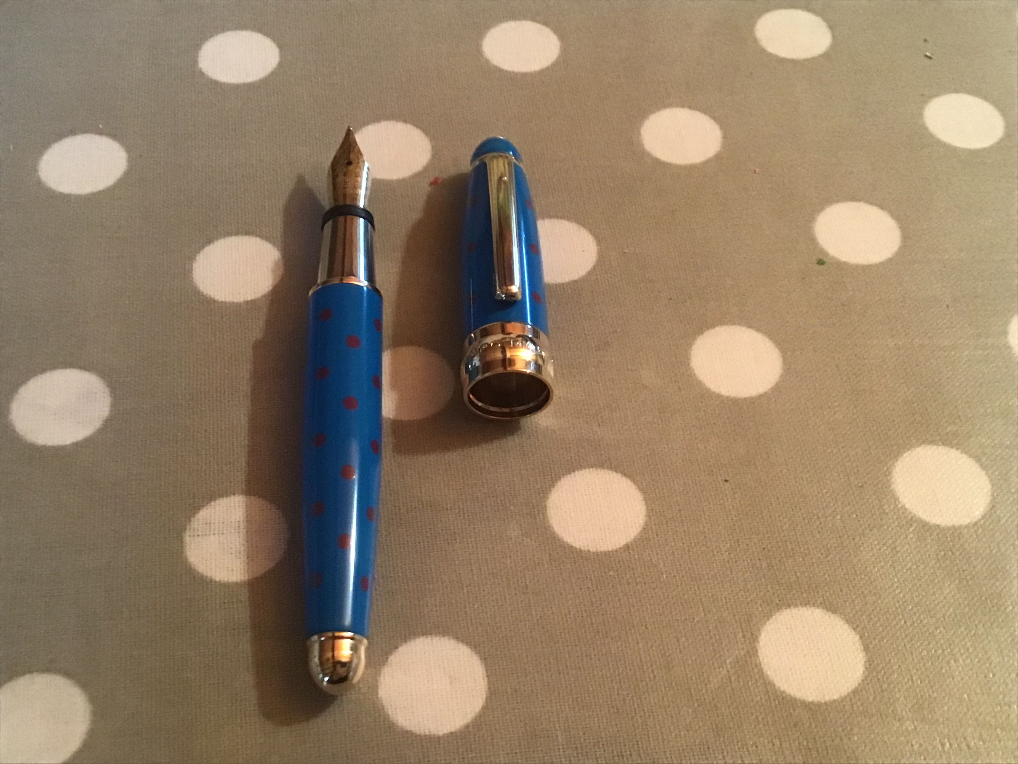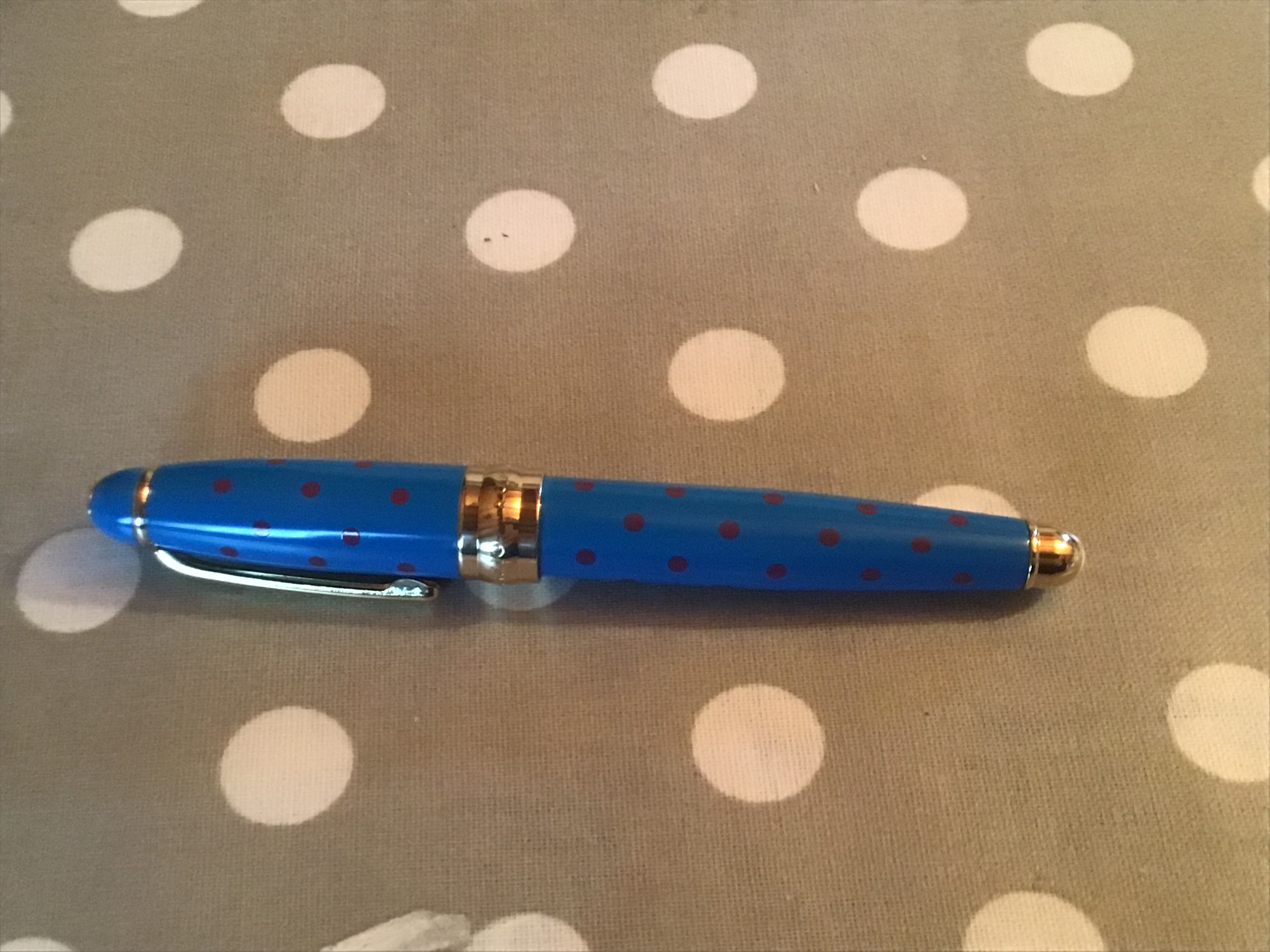 Il che, ammettiamolo, può rendere molto difficile scrivere con questa penna a un uomo, o anche solo a una donna con mani grandi. Io ho delle estremità microscopiche, quindi la cosa non mi causa nessuna difficoltà, però è un fattore di cui tener conto in caso il suo aspetto grazioso e un po' vezzoso la renda attraente per l'acquisto.