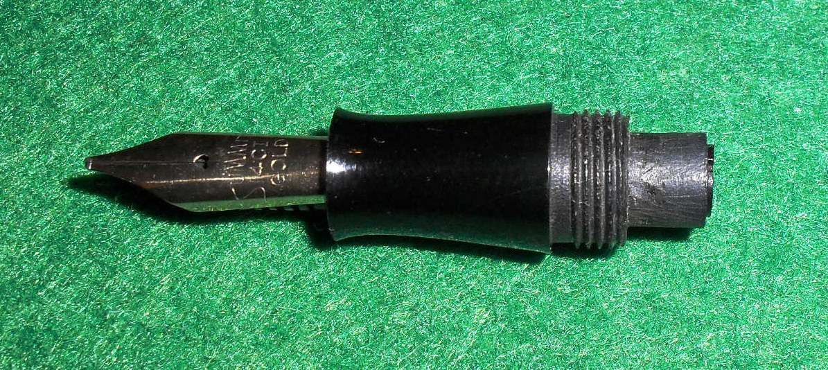 L’altra caratteristica che rende questa penna quasi un’eccezione nel panorama del catalogo Summit è la filettatura della sezione; usualmente, le penne commercializzate con questo marchio erano dotate di sezione con inserimento a pressione. Il pennino d'oro a 14 carati è il tipico medio di produzione Lang, che beneficiò di una lunghissima carriera, dato che equipaggiava già la S. 125 degli anni Trenta. Ben molleggiato anche se non flessibile, era l'ideale per una scrittura pratica e veloce anche quando la punta era fine, come nel nostro caso; insieme al classico alimentatore, garantiva un flusso costante ed un tratto preciso. L’alimentatore in ebanite è l’efficientissimo standard Summit in uso sin dagli anni Trenta, dotato di alettature e selle laterali, in grado d’assicurare un flusso all’occorrenza anche corposo, adatto pure a pennini flessibili, che Lang continuò a fabbricare fino alla chiusura.