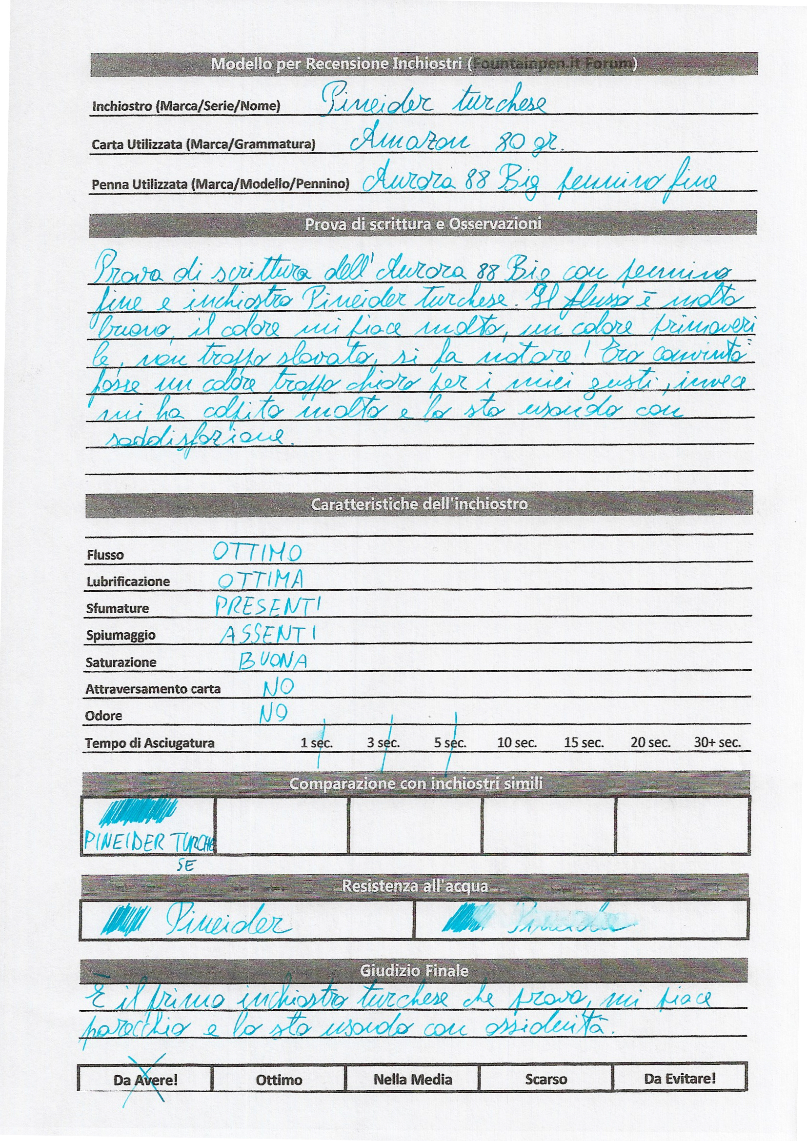 Buongiorno, ho preso questo inchiostro Pineider turchese e mi piace molto, ecco una piccola prova...