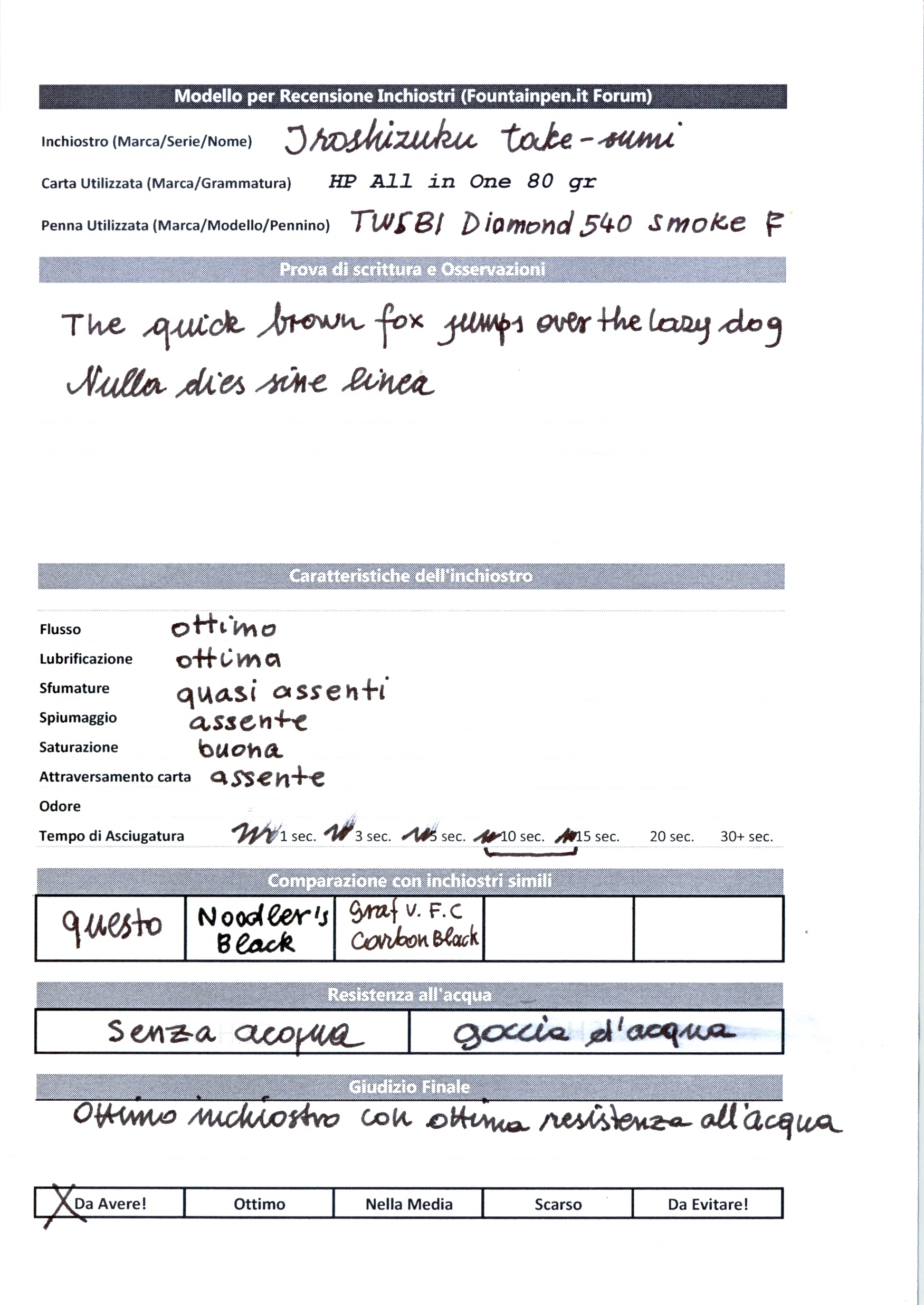 Visto che questo inchiostro ancora non è stato recensito, ci provo io.
