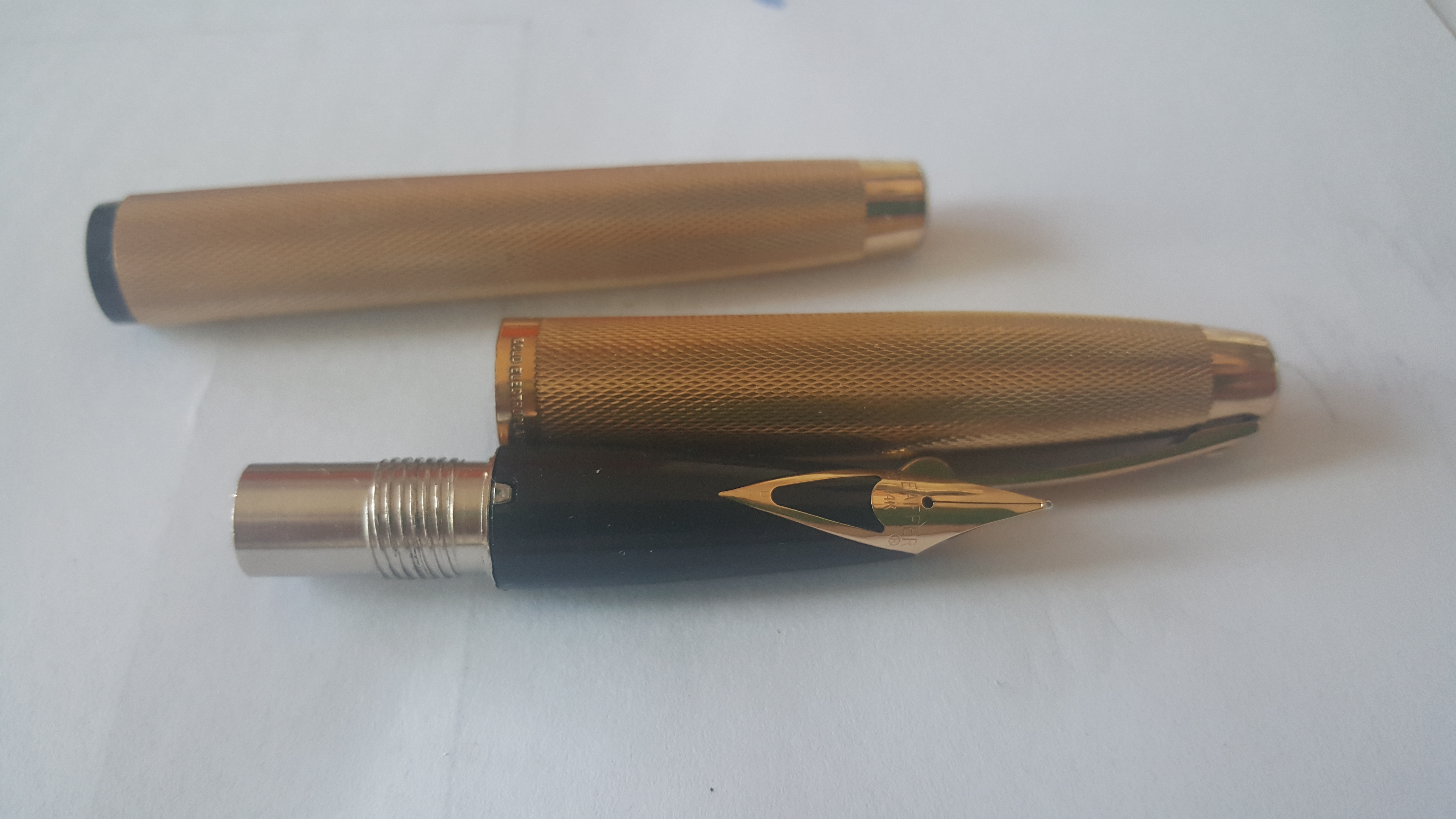 Le uniche ibformazioni che ho è che è una SHEAFFER made in USA (ovviamente),non ne conosco il modello, aveva una cartuccia con un inchiostro nero che io sostituito solo per sicurezza ma che dopo ALMENO 20 anni ancora sembrava in ottime condizioni.