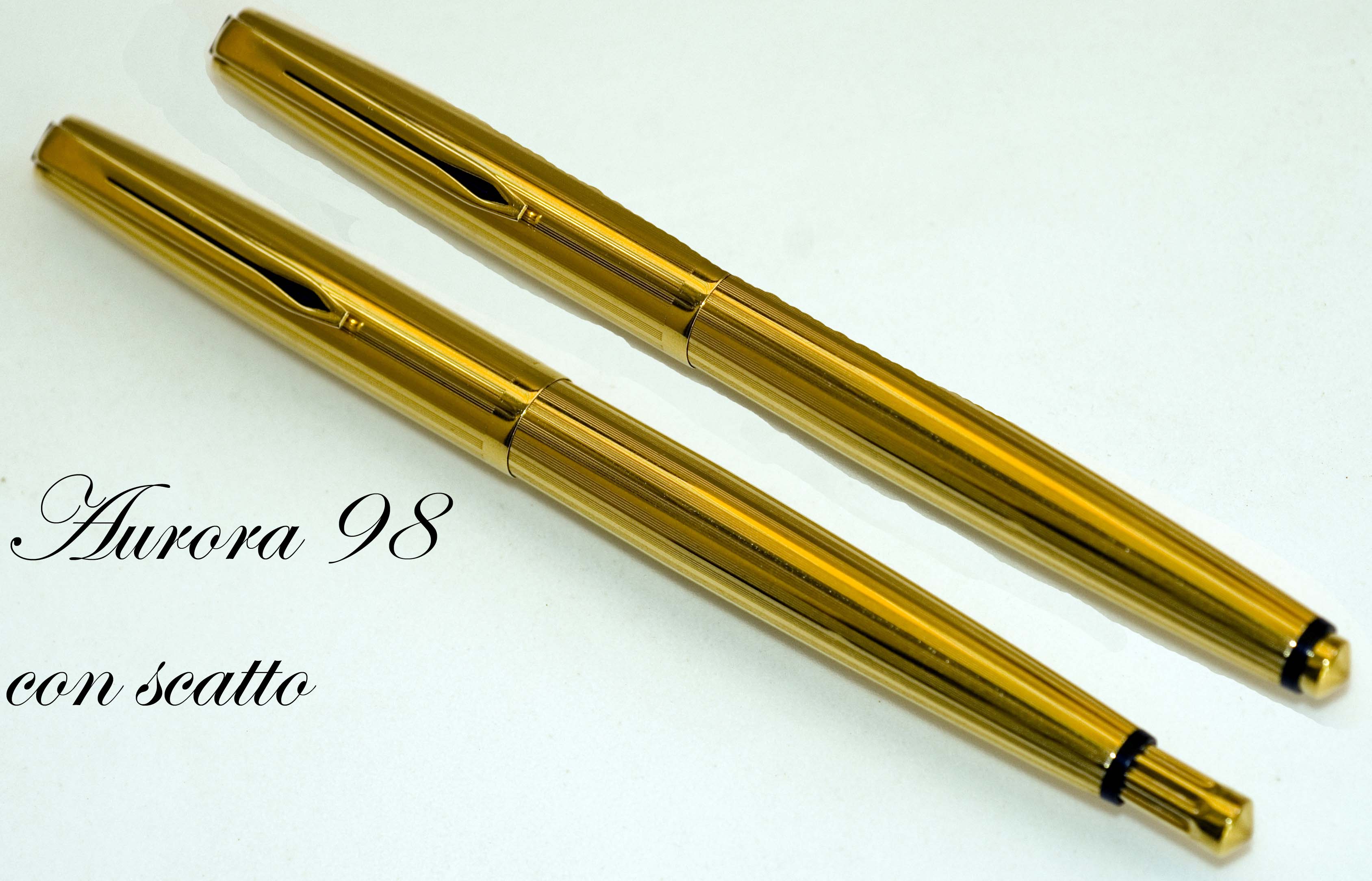 Infine le 98, in particolare la placcata oro a pistone (magnifica, una vera N.O.S.) e la “Internazionale” a cartuccia/converter: