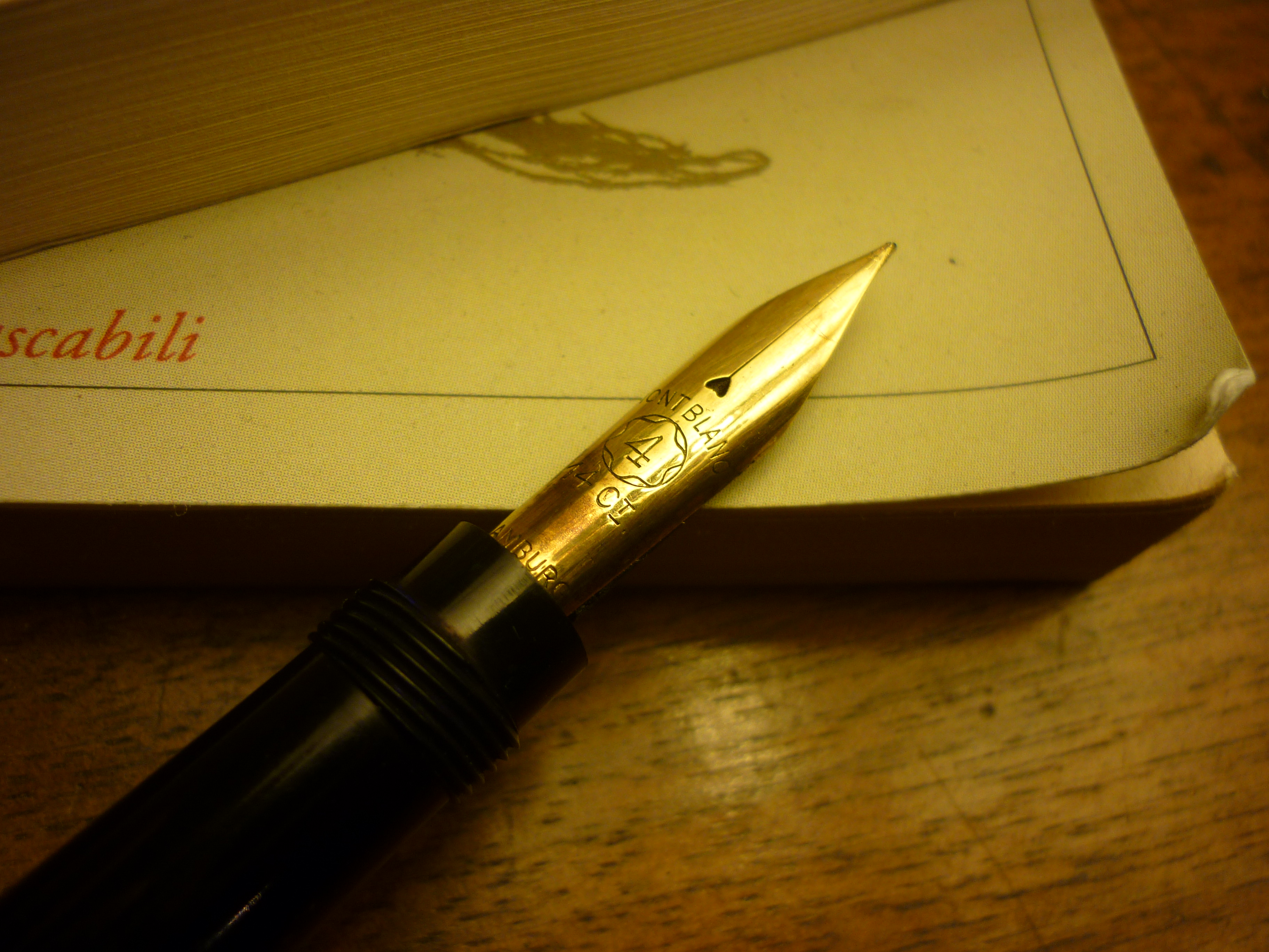 Il pennino è dorato, con scritto Montblanc e retrattile: