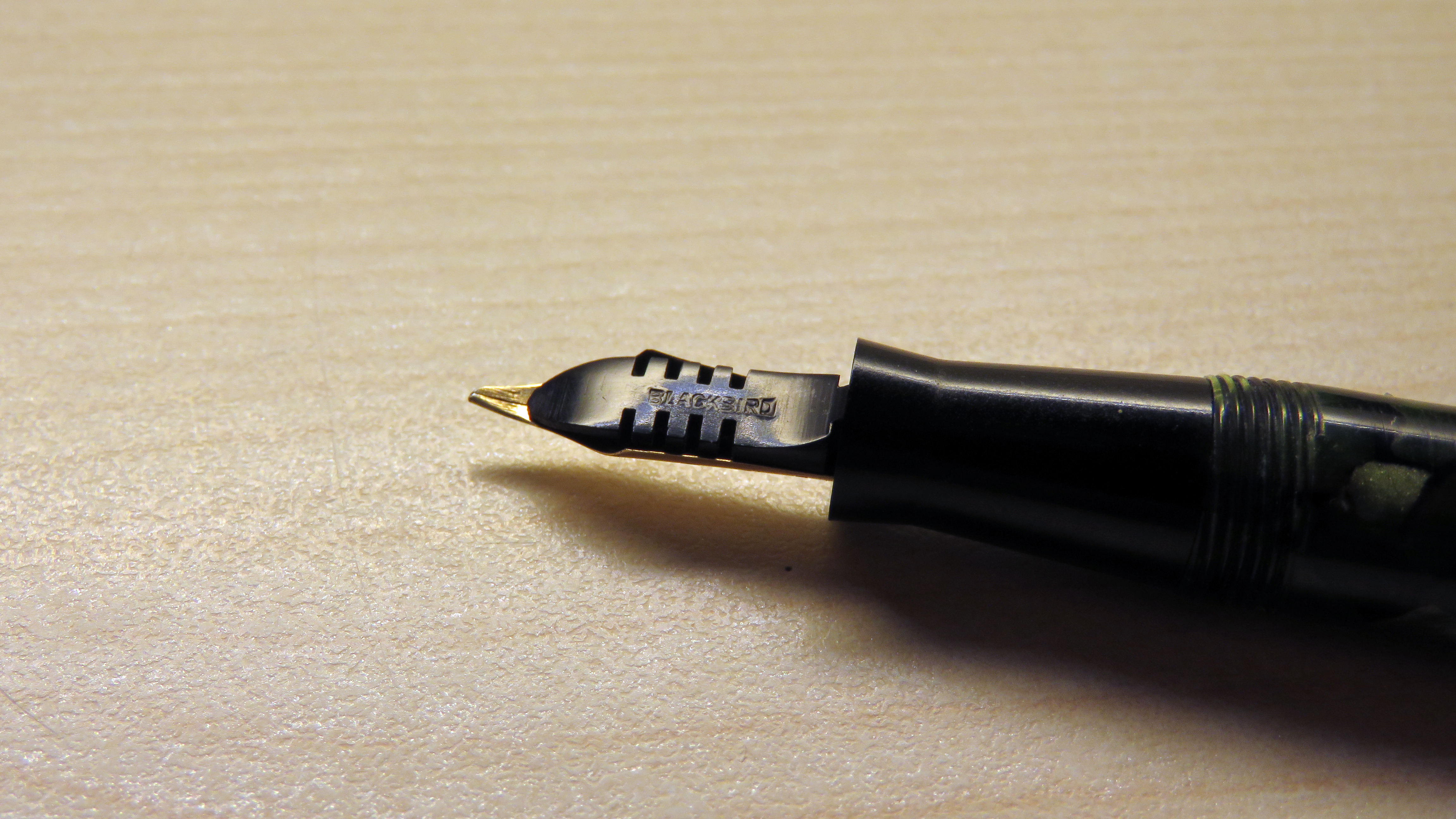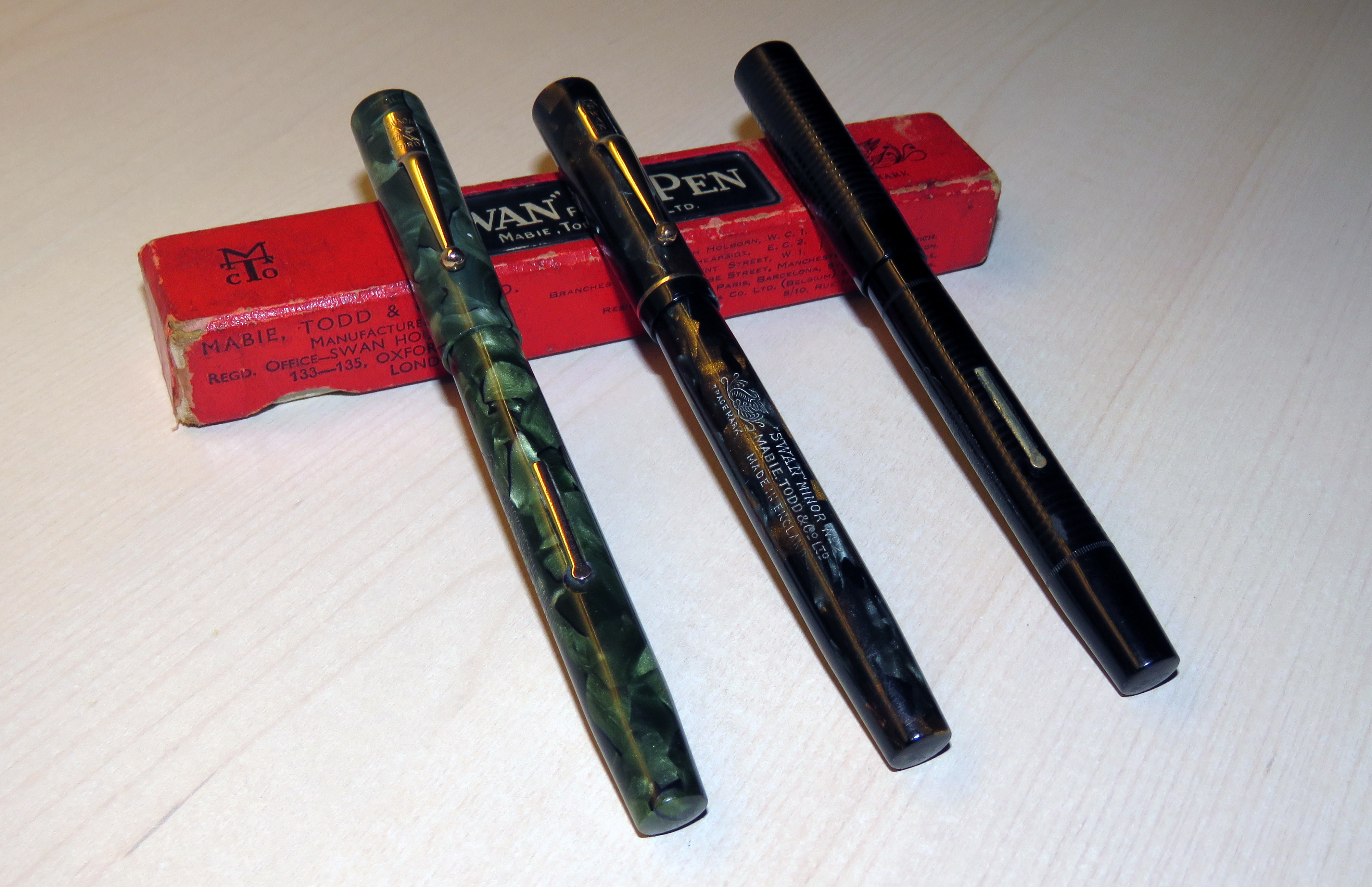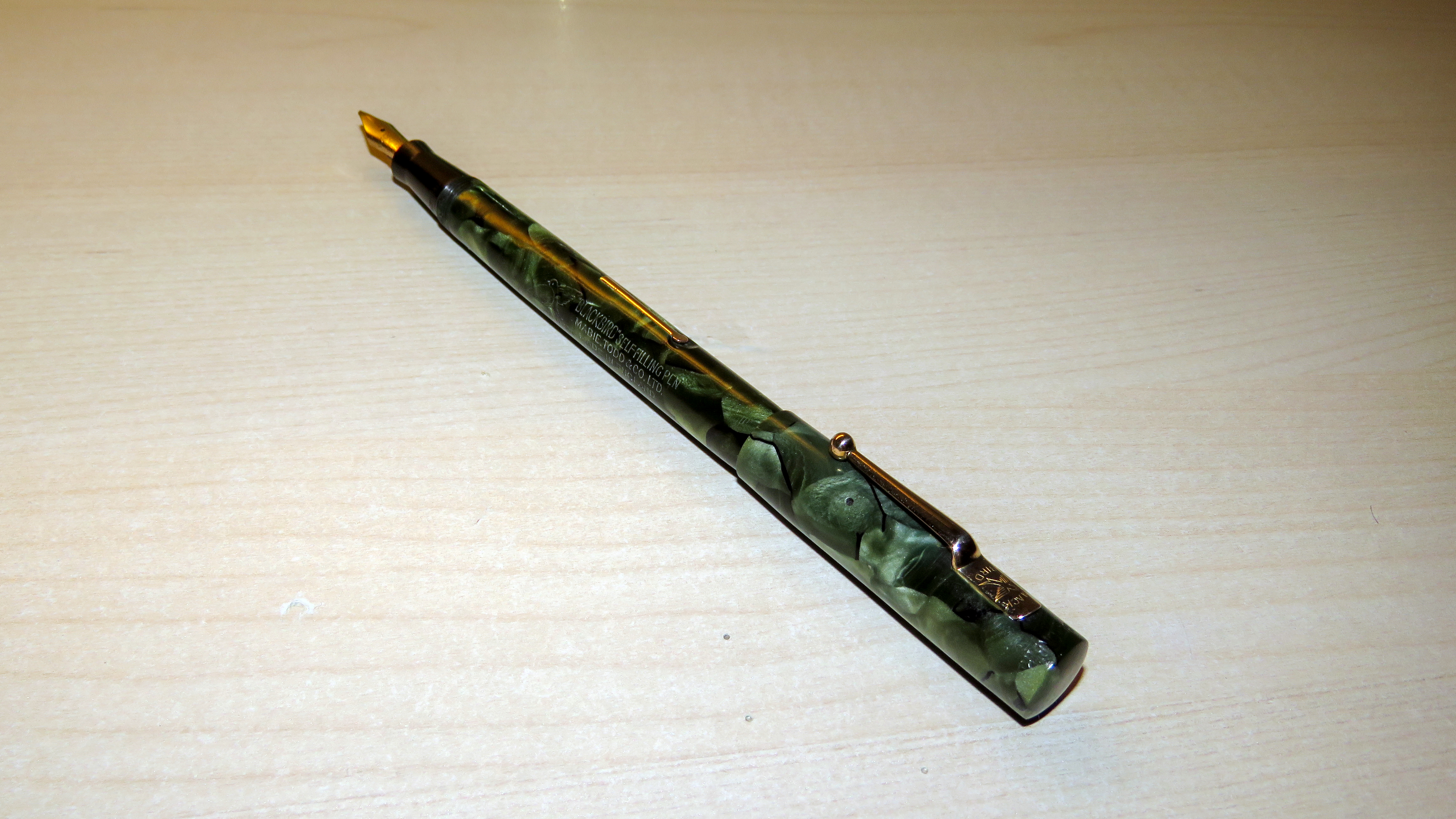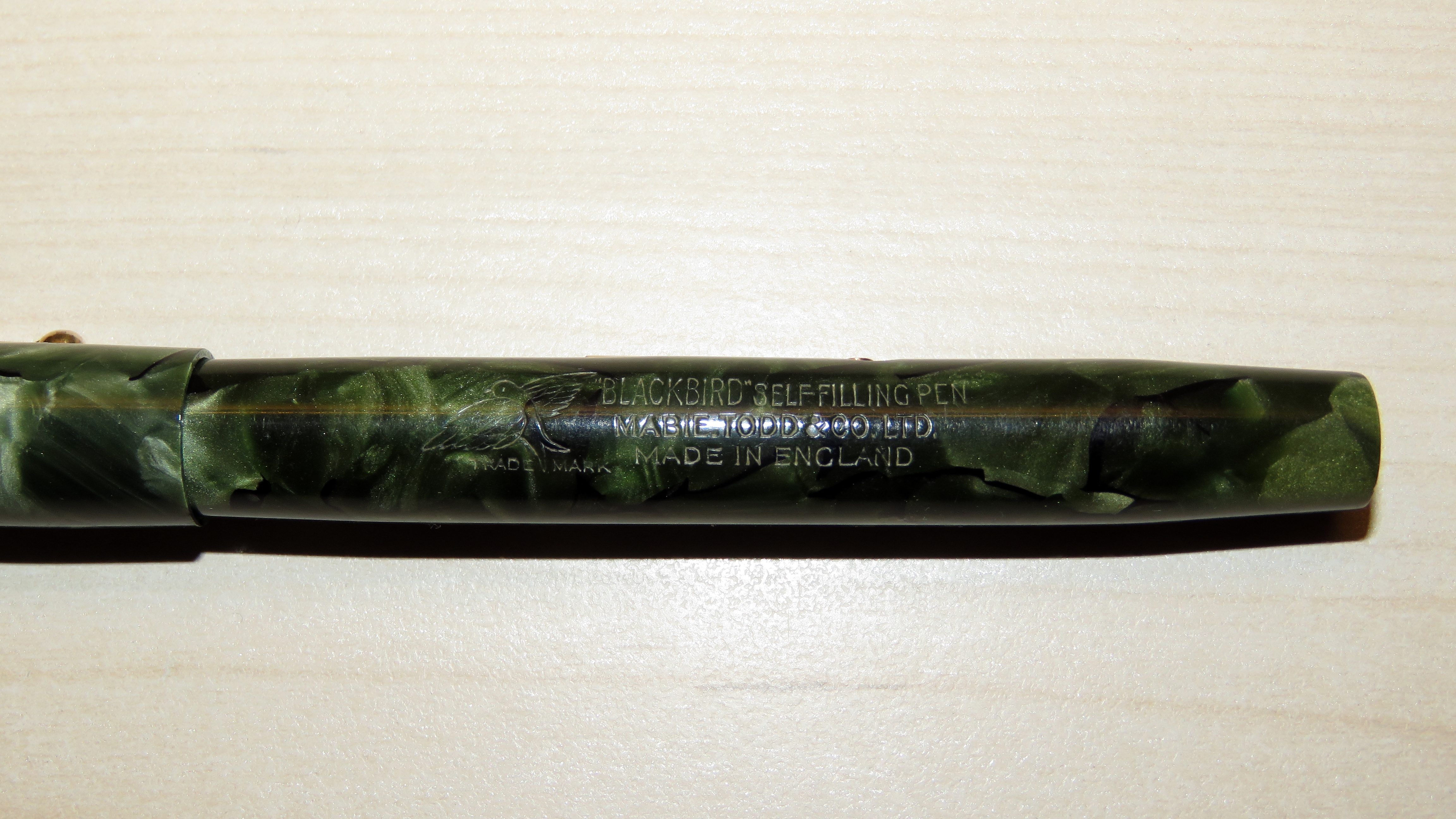 Eccone un'altra, una Blackbird di Mabie Todd nella celluloide classicissima che più classica non si può, verde marmorizzata.