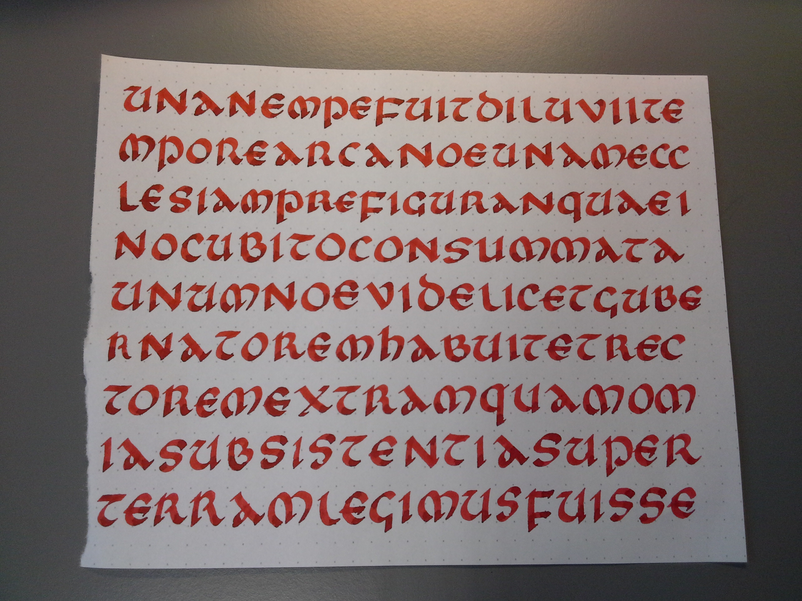 4- tanta pazienza e tempo e, soprattutto, nessuna fretta: nel medioevo il tempo scorreva in modo diverso da oggidì e l'apprendimento delle forme calligrafiche relative ne risente. Prima di iniziare a scrivere osserva bene ogni lettera, cercando di capire i rapporti dimensionali.