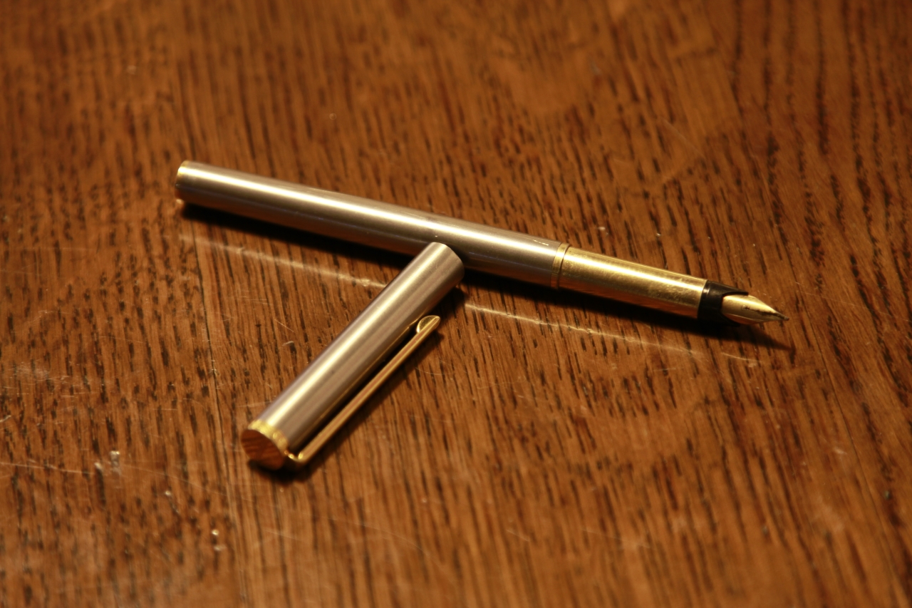 oggi complice un collega che mi ha lasciato una cartuccia Pelikan con inchiostro marrone, ho usato per la prima volta una delle due Ronson lasciatemi. Come già detto le penne sono rimaste inutilizzate per una quindicina di anni, io le ho pulite tutte e sinceramente mi sono sorpreso di come una volta inserita la cartuccia in pochi secondi la penna fosse già pronta per scrivere.