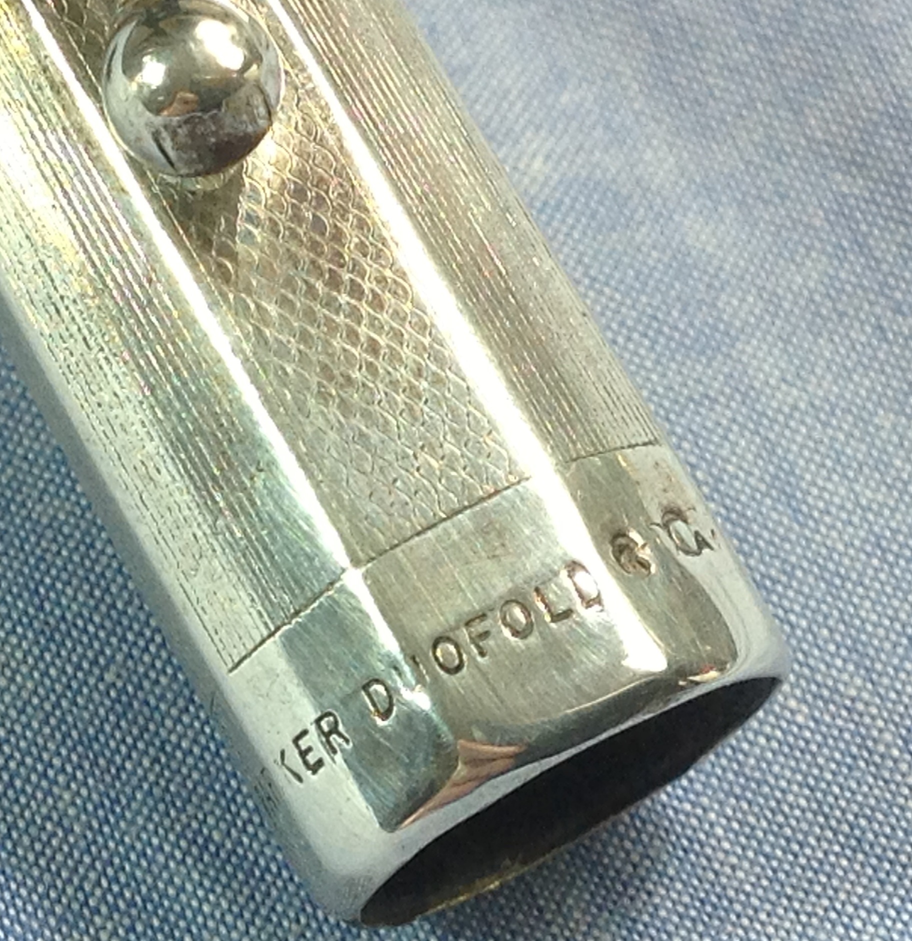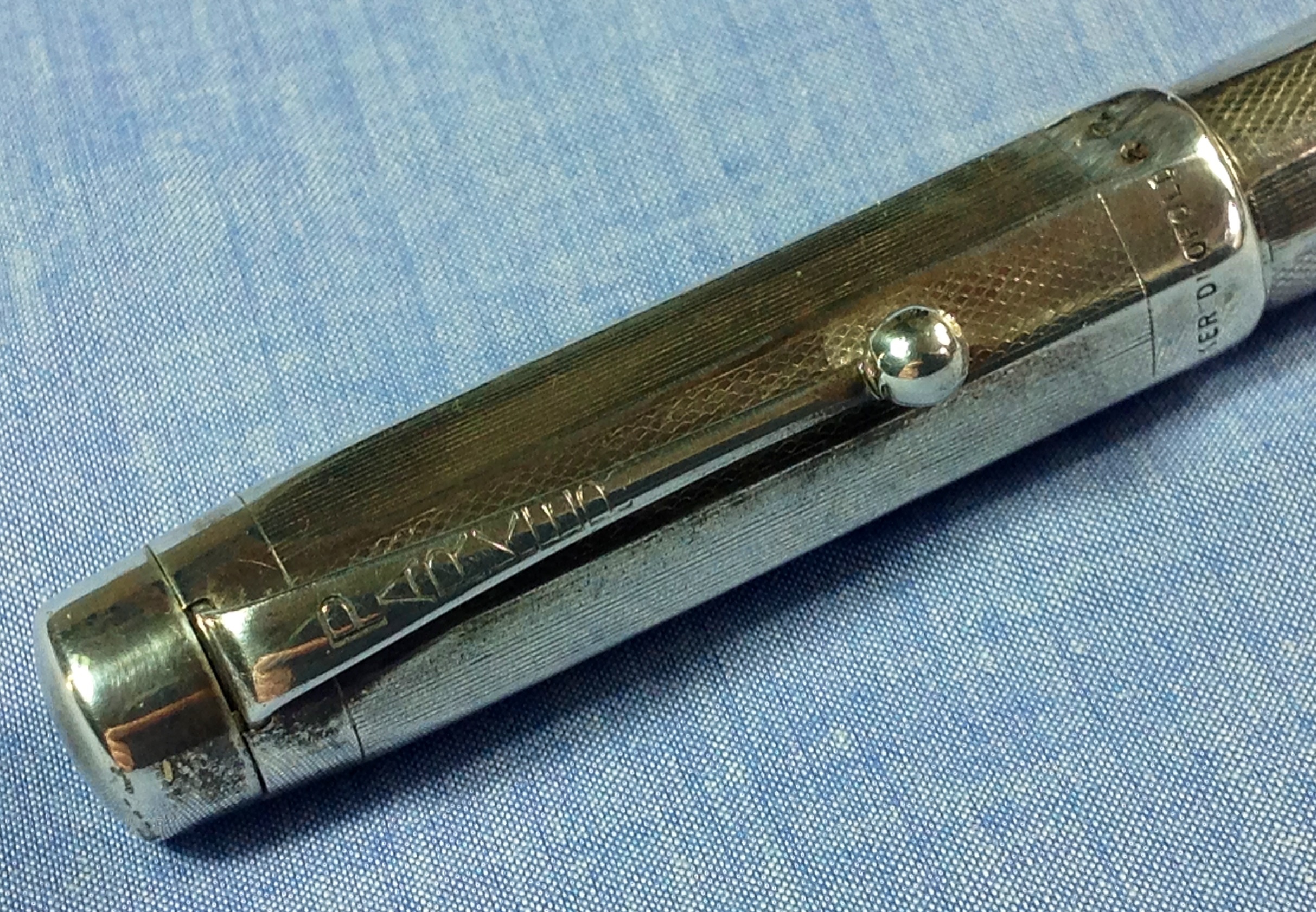 Ha inoltre sul cap lip l'incisione "Parker Duofold" seguita da due marchietti illeggibili, forse i resti di un marchio per il titolo dell'argento...