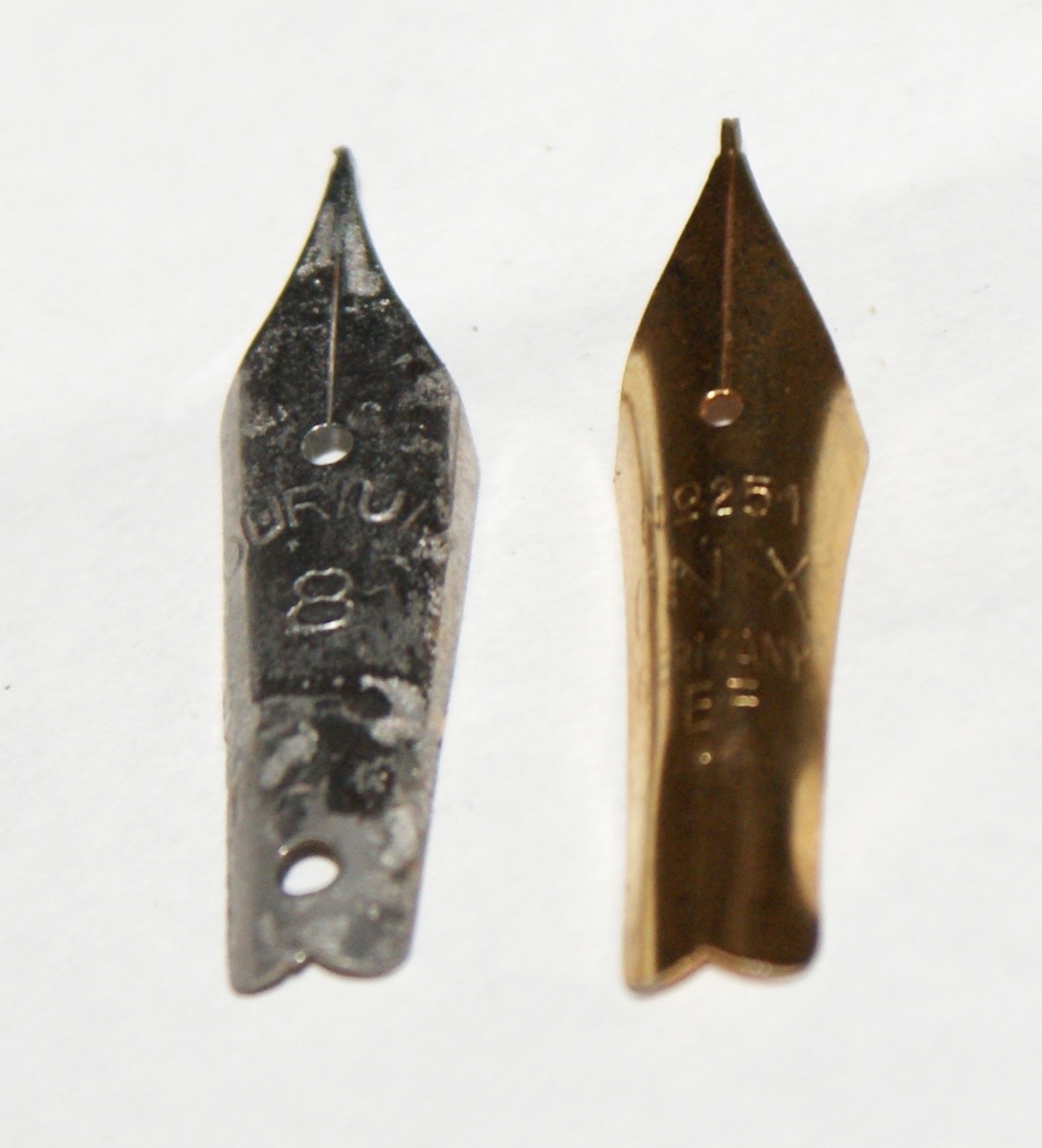 Non ci voglio perdere sopra nemmeno un minuto di tempo e visto che l'alimentatore è di ebanite, ho provveduto a sostituire il pennino con un ONIX n° 251 prodotto dalla Brause diverse decine di anni fa.