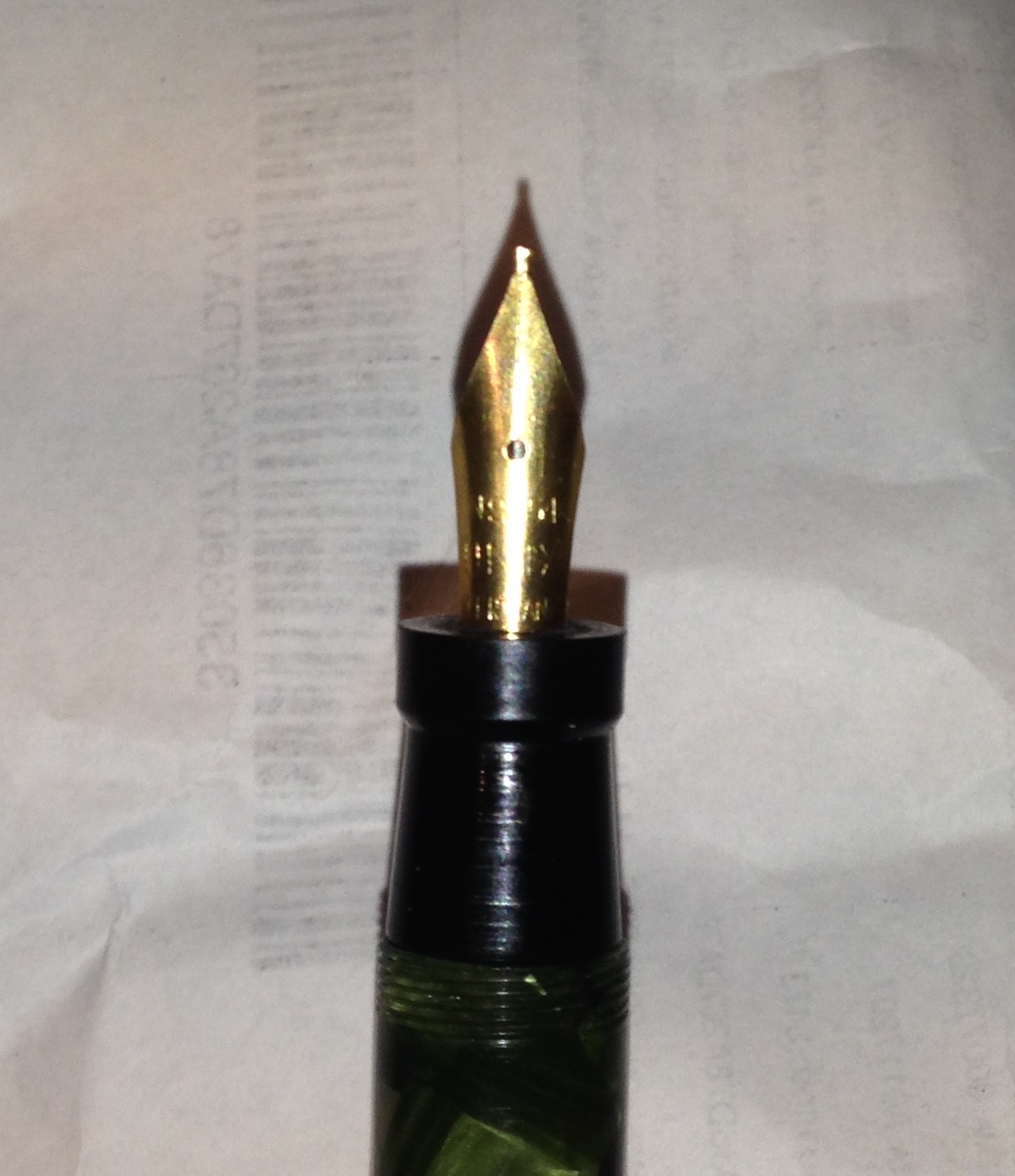 Si tratta di un semplice pennino flessibile in acciaio dorato, che non ha metallo duro in punta, ma è incredibilmente flessibile e facile da aggiustare.
