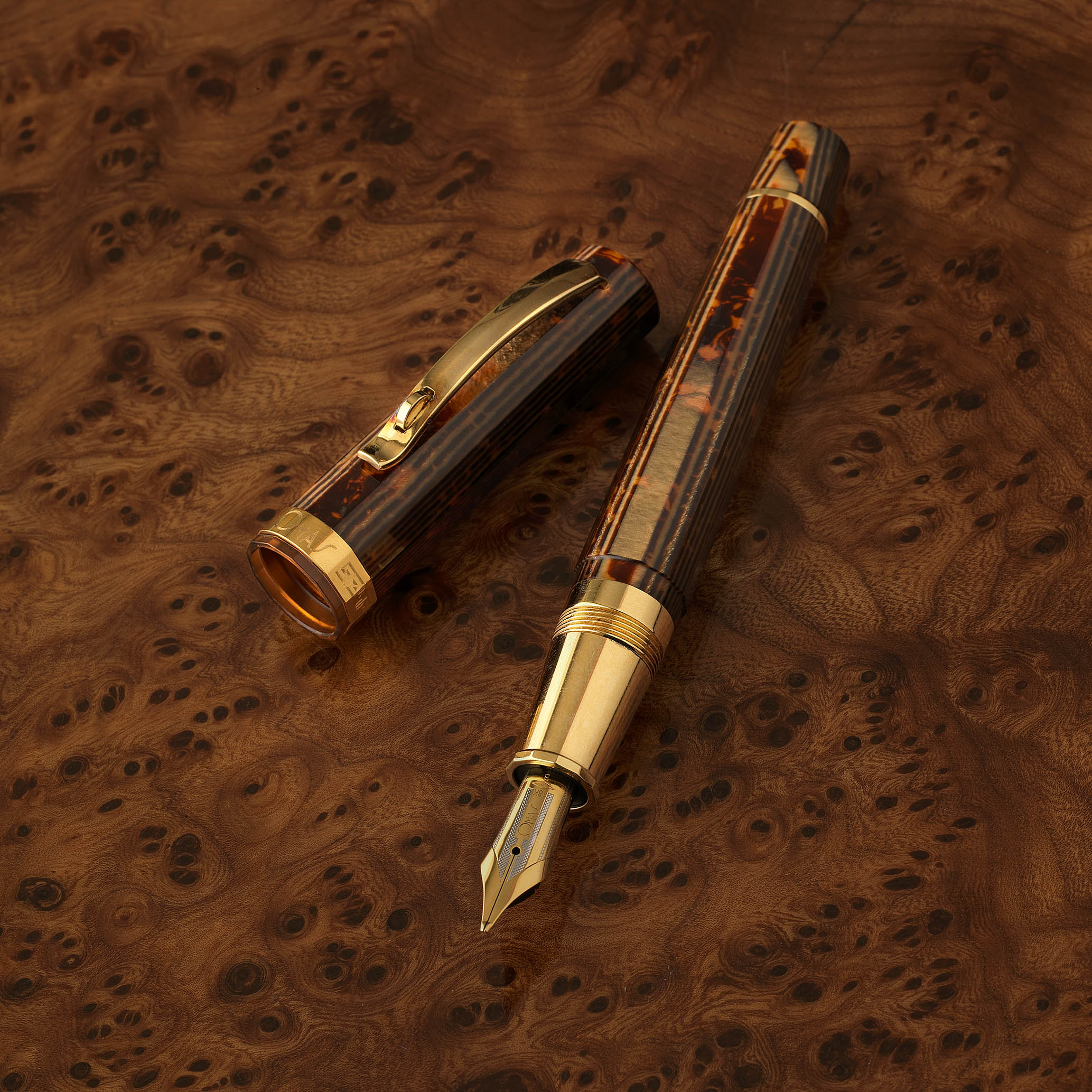 Non é rimasto molto che non sia già stato scritto a proposito della famosa penna inventata de Armando Simoni, la Omas Extra creata nel 1931 e ispirata allo stile greco classico, incluso il corpo sfaccettato dodecagonale (come le colonne doriche) e l’anello dorato sul tappo, impreziosito da un motivo a greca. La Paragon, introdotta con questo nome da Omas nel 1984 come la ammiraglia della linea Arte Italiana, era l’erede diretta delle Extra degli anni Trenta e Quaranta, via i modelli Gentlemen/Gentleman degli anni Sessanta sino agli Ottanta del secolo scorso. Nel 1991, Omas lanciò la sua Collezione Classica in Celluloide in quattro colori (incluso la Arco marrone o bronzo), alle quali si aggiunsero in seguito altri tre colori di celluloide. La produzione della Collezione Celluloide (che, oltre alla Paragon, includeva la Milord, la Dama e la Princess) terminò ufficialmente nell’anno 2000.