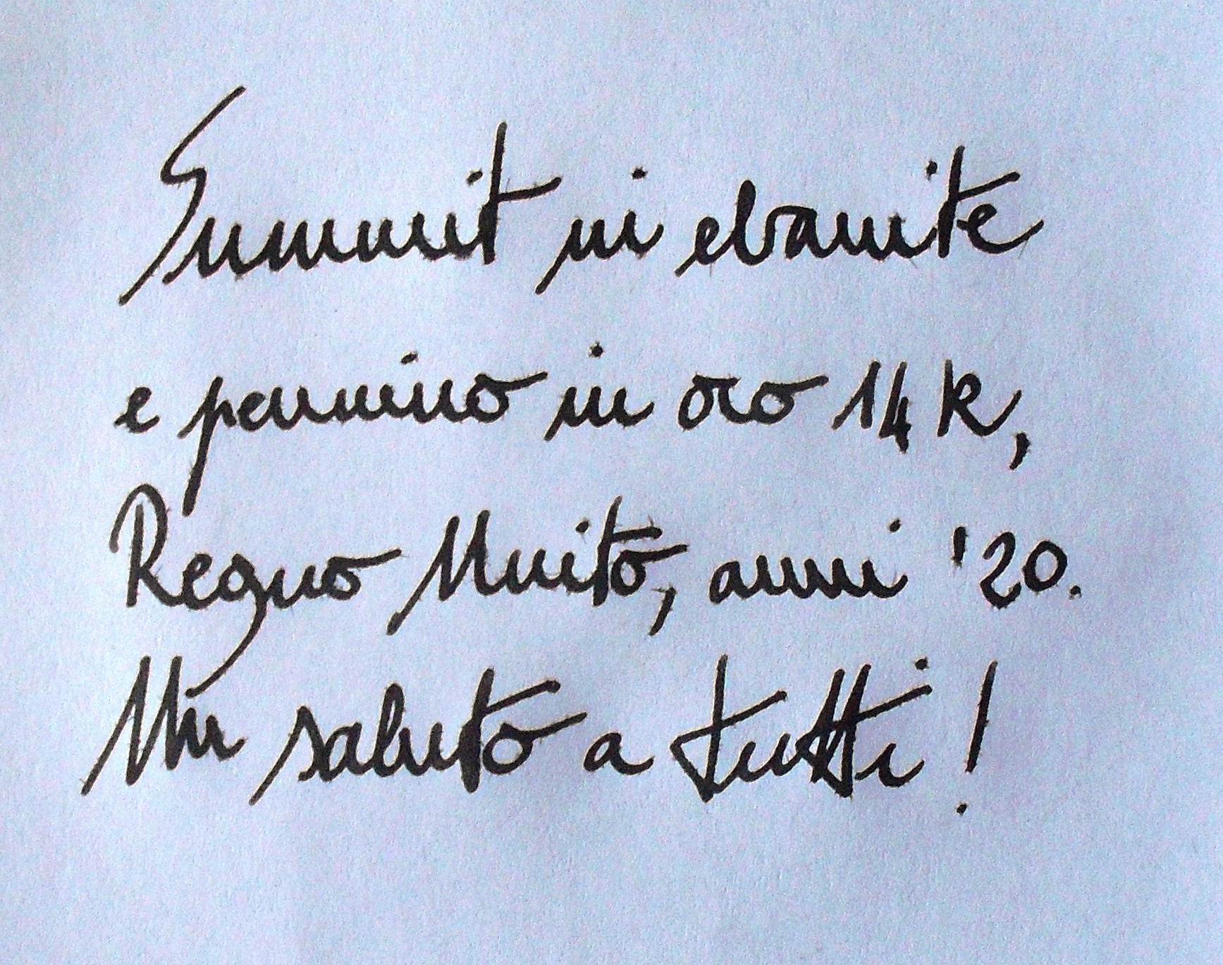 Particolarmente apprezzabile il fatto che il materiale non abbia subito viraggio, presentandosi anche oggi di un bel colore nero lucido. Un’elegante, sobria e piacevolissima stilografica da scrittoio, che sarebbe piaciuta anche a lui...