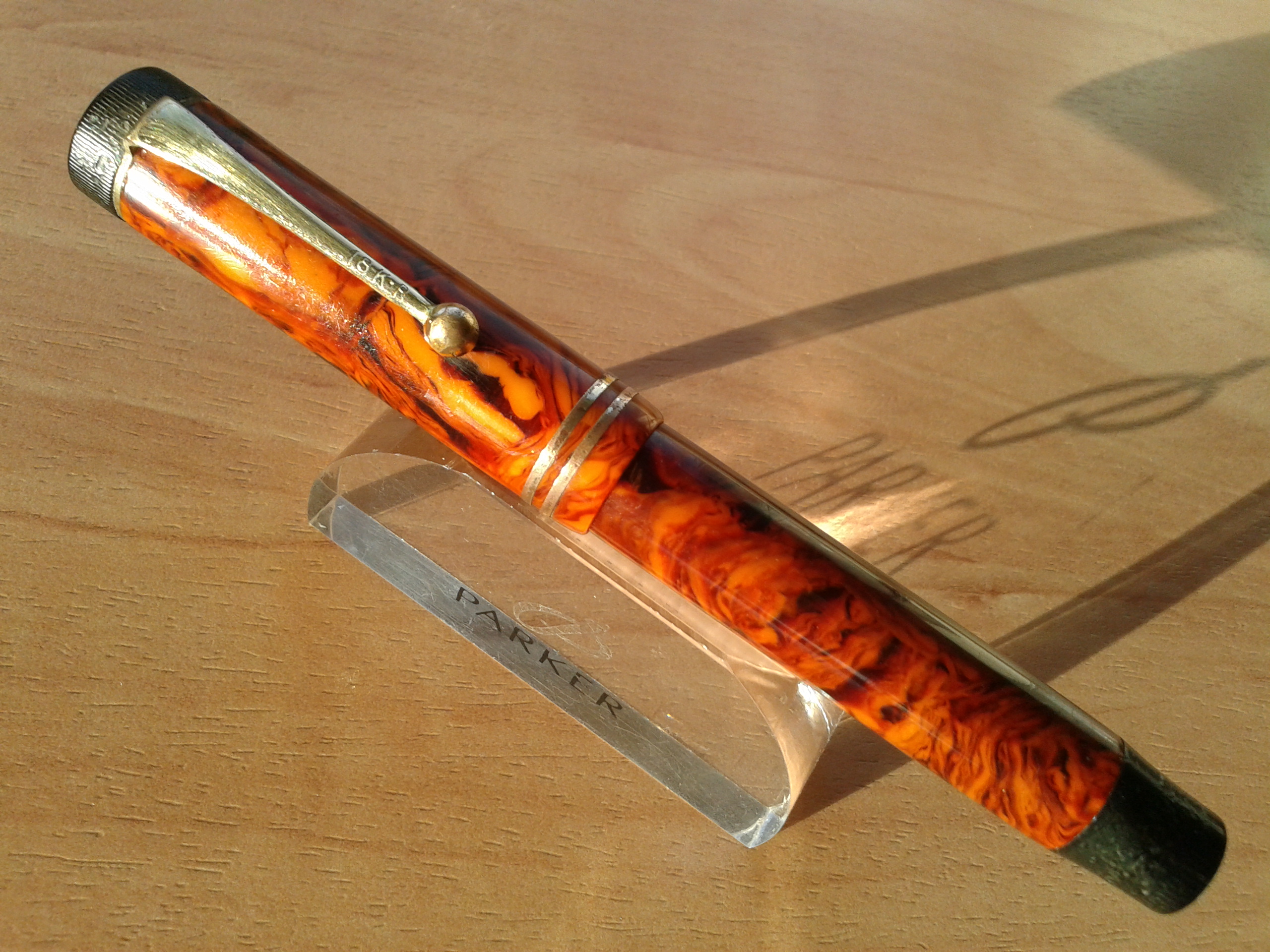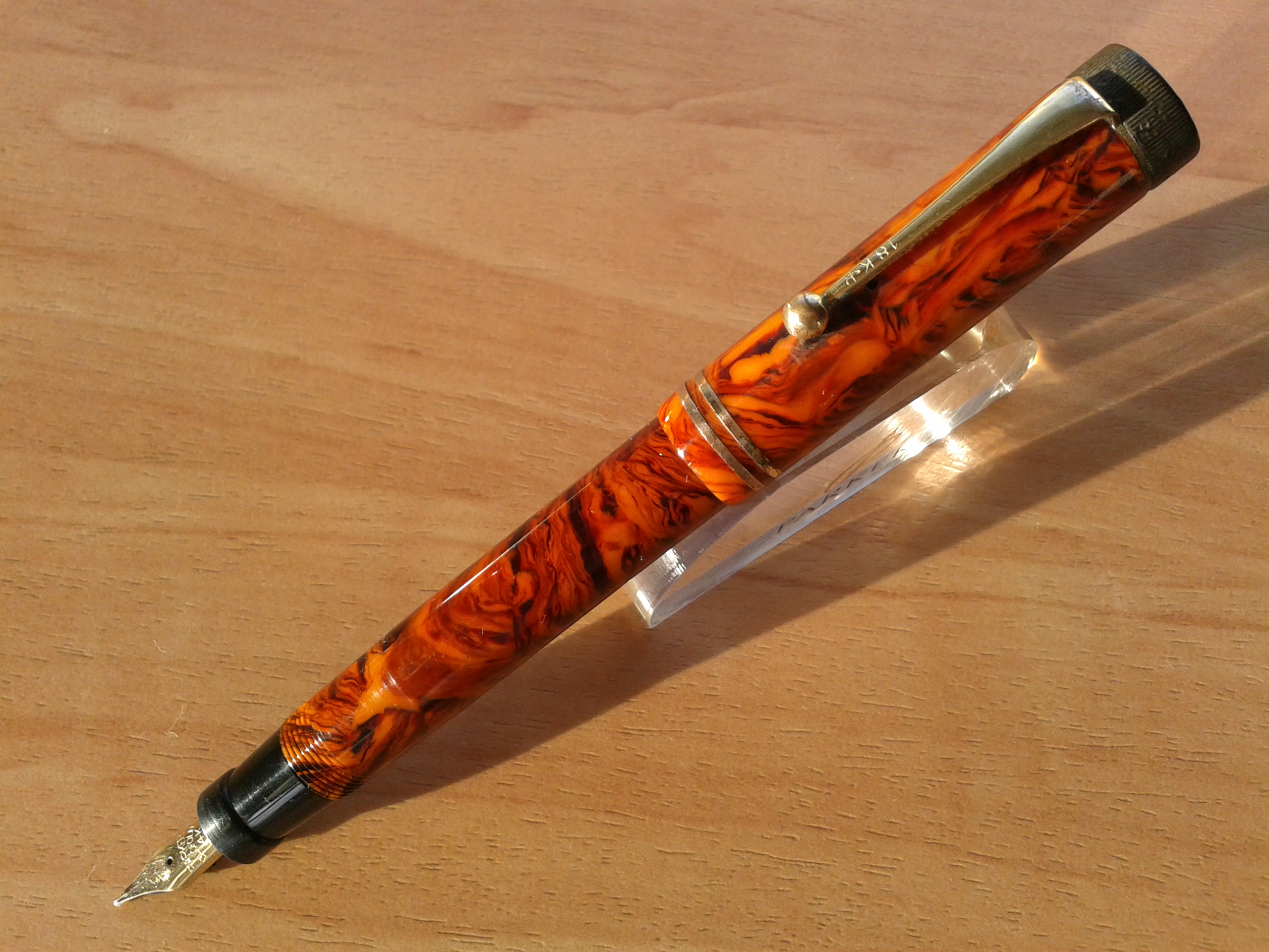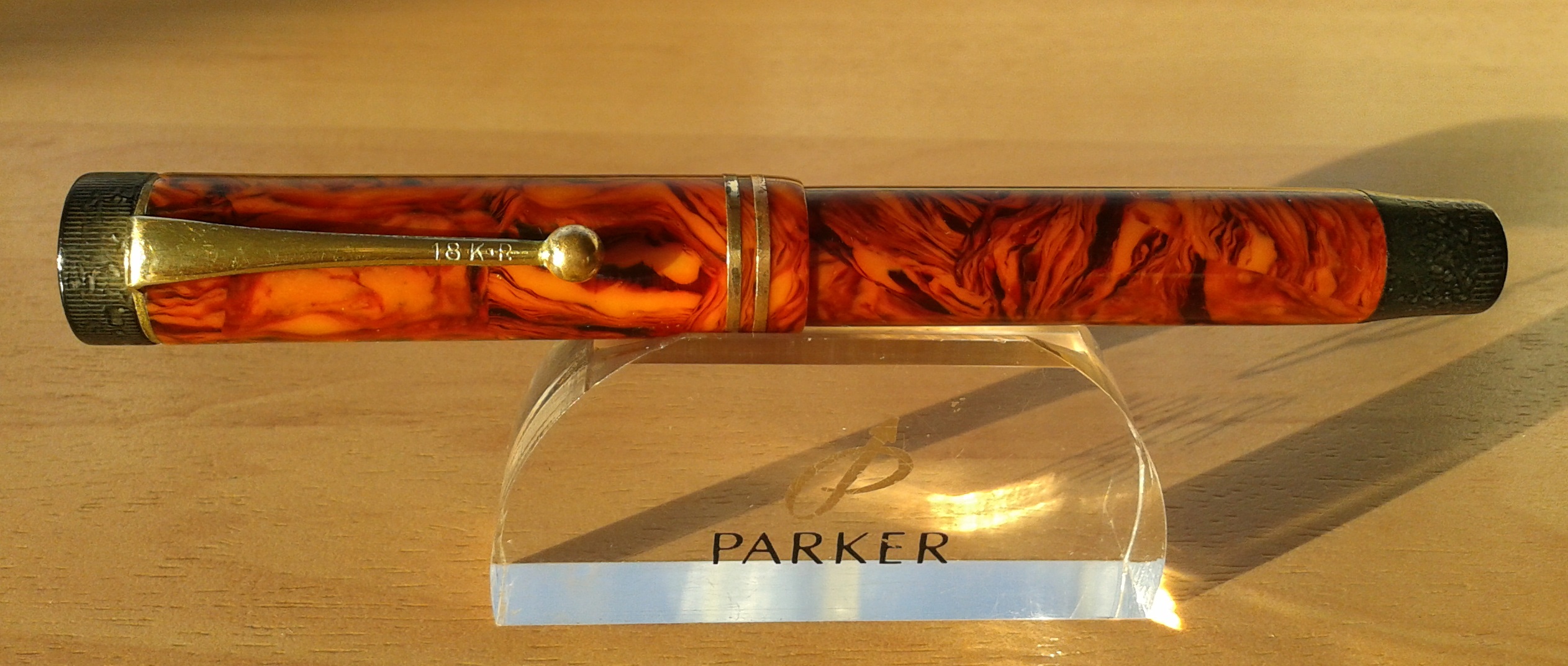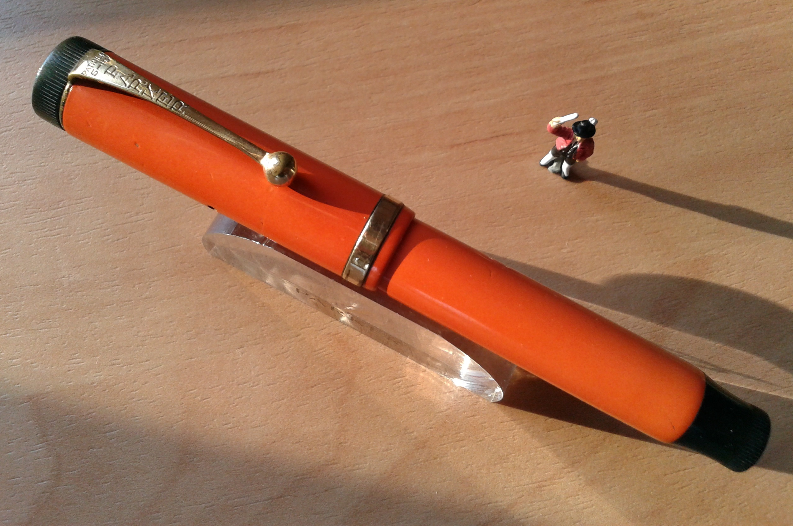 Questa una Parker Duofold Junior in ebanite rosso arancio del 1924,