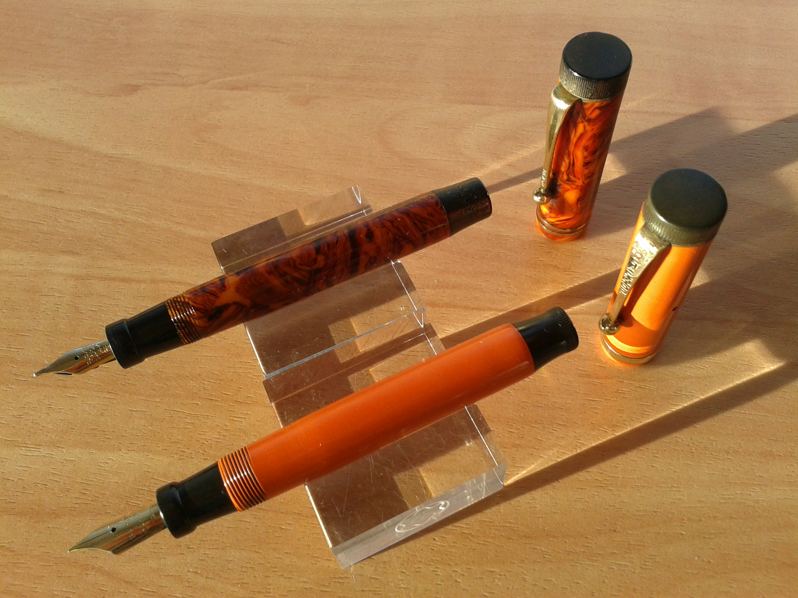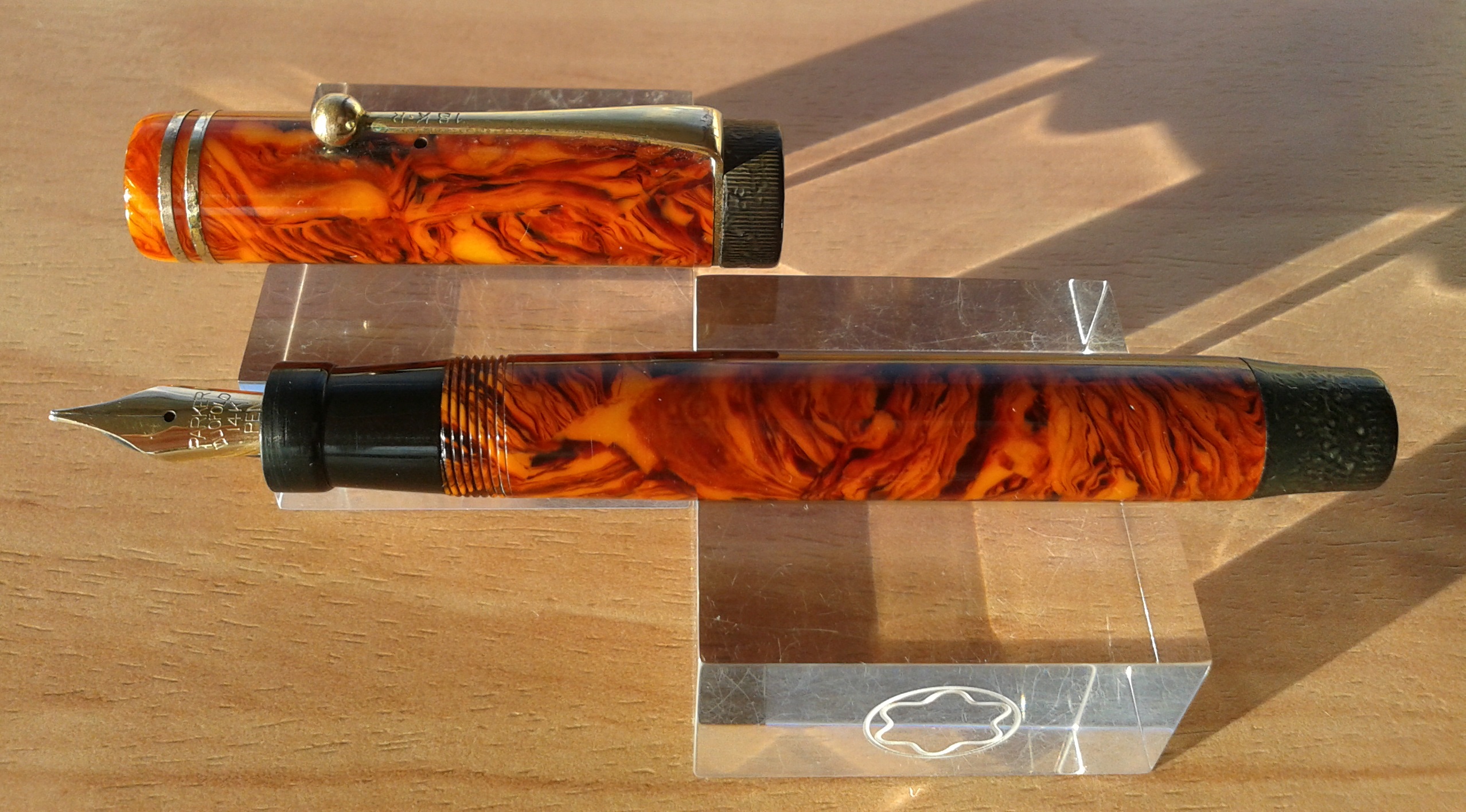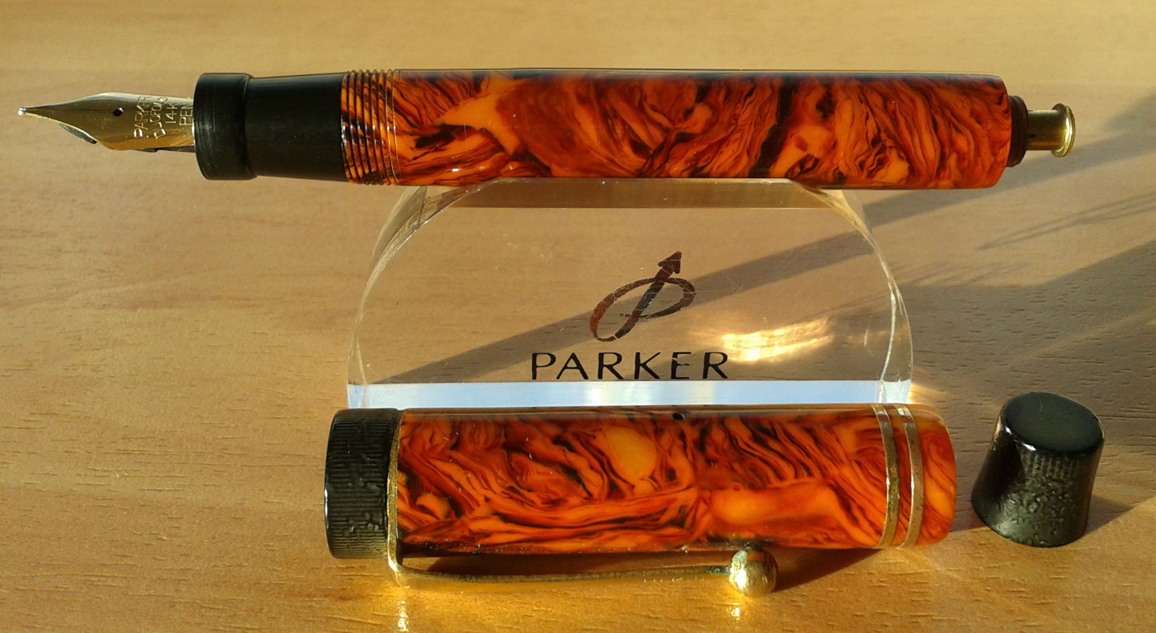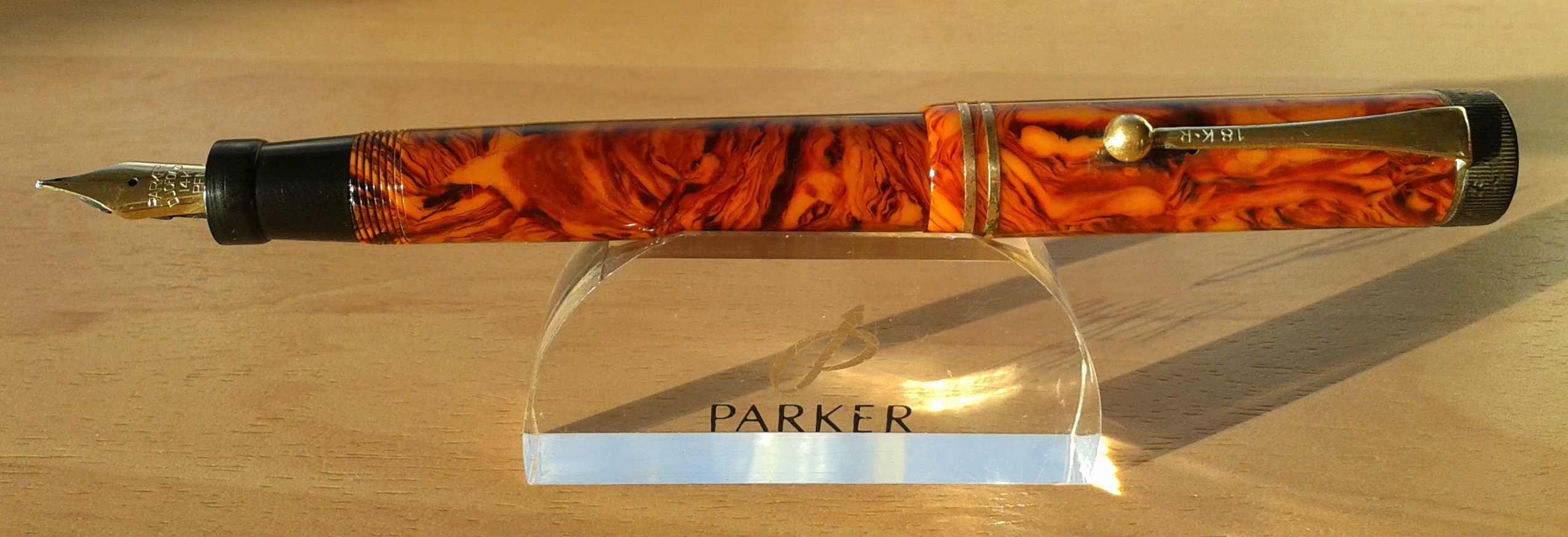 Questa una Parker Duofold Junior in ebanite rosso arancio del 1924,
