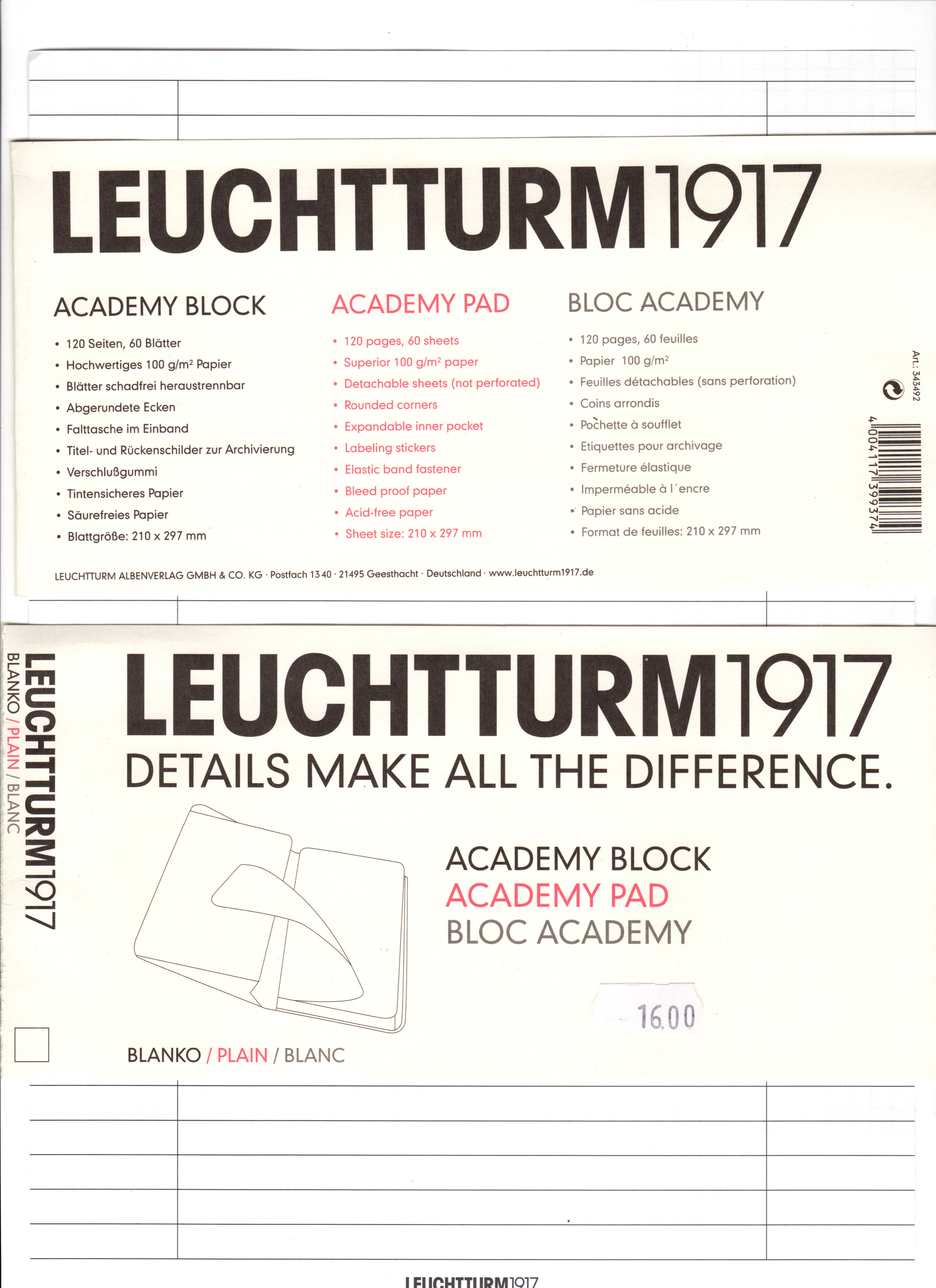 Visto che mi avevi così gentilmente accolto con un bel Willkommen (anche se io sono di Milano e mi sono trasferito a Bolzano solo da qualche annetto) ti rivelerò che in una antica cartoleria di Merano un paio di ACADEMY BLOCK della Leuchtturm1917 li ho potuti acquistare lo scorso mese...blaustern ha scritto:Sono molto interessata ai prodotti Leuchtturm ma non trovo nulla nei negozi fisici della mia città...