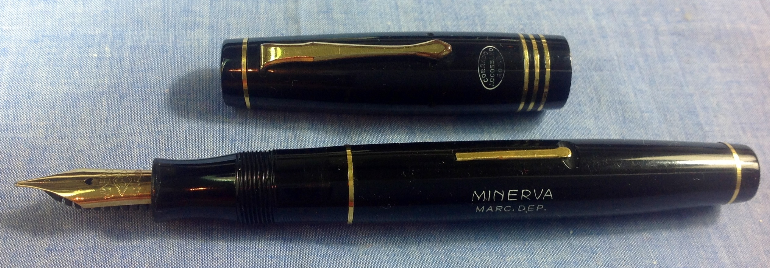 A me sembrerebbe una Minerva Ellittica by Omas, chiaramente in una versione "dedicata" e quindi non perfettamente uguale alla penna marchiata.
