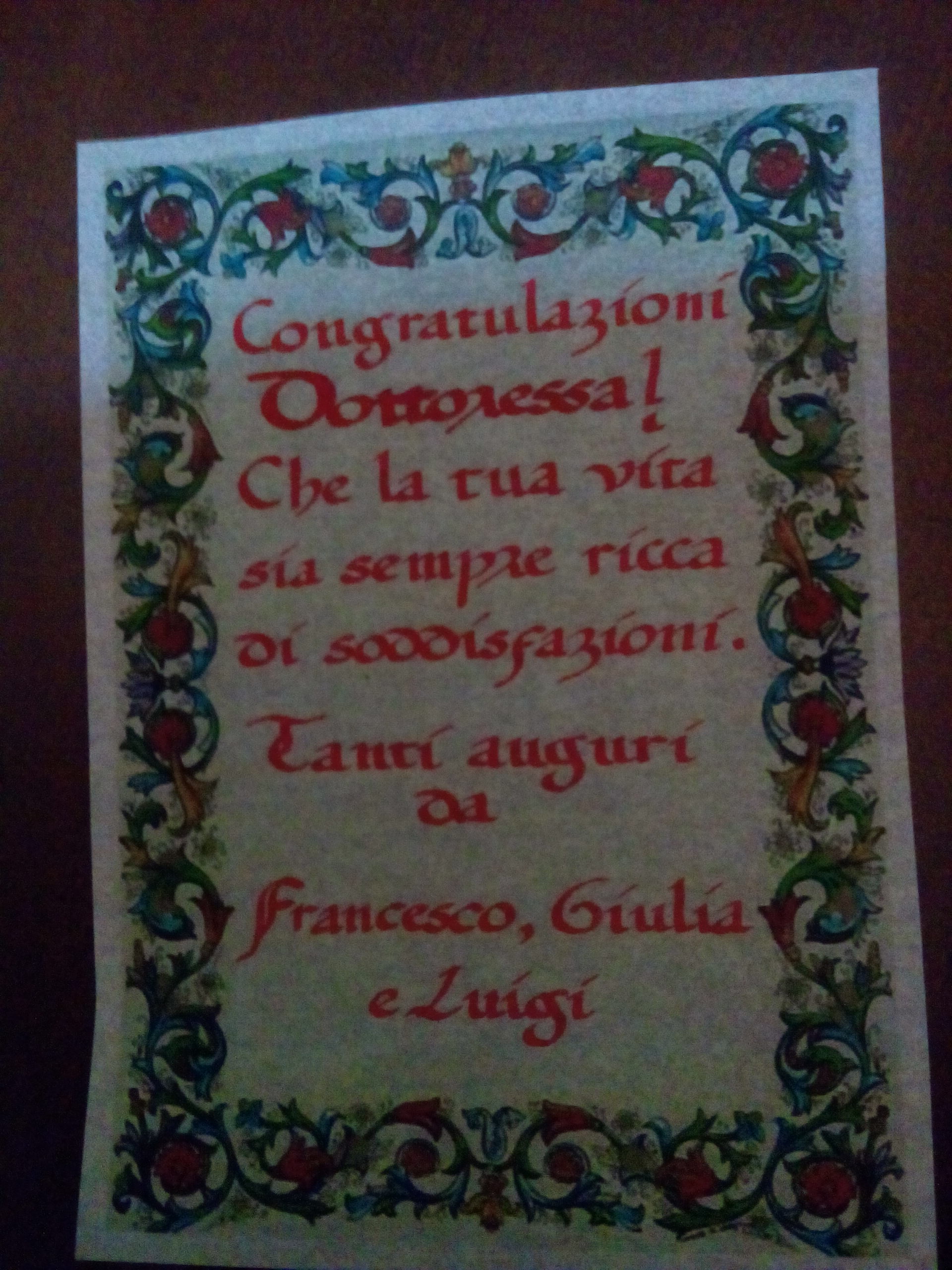 Mi sono laureata con una tesi in Paleografia, nella quale ho analizzato un manoscritto di fine XIV - inizio XV sec. scritto in gotica rotunda.