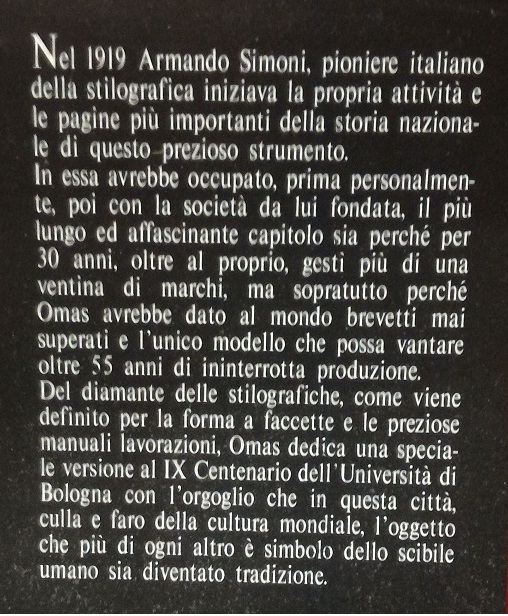 Questo modello di Omas è un omaggio al IX Centenario dell'Università di Bologna.