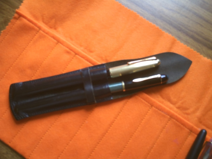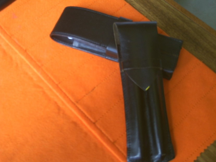 Per quelle che porto con me uso questo portapenne, che mi pare vecchiotto forse vintage, che vedo benissimo per le due vecchie signore che vi sono ospitate. Lo trovo molto comodo in quanto molto poco ingombrante, non modifica per niente il filo del taschino della giacca.