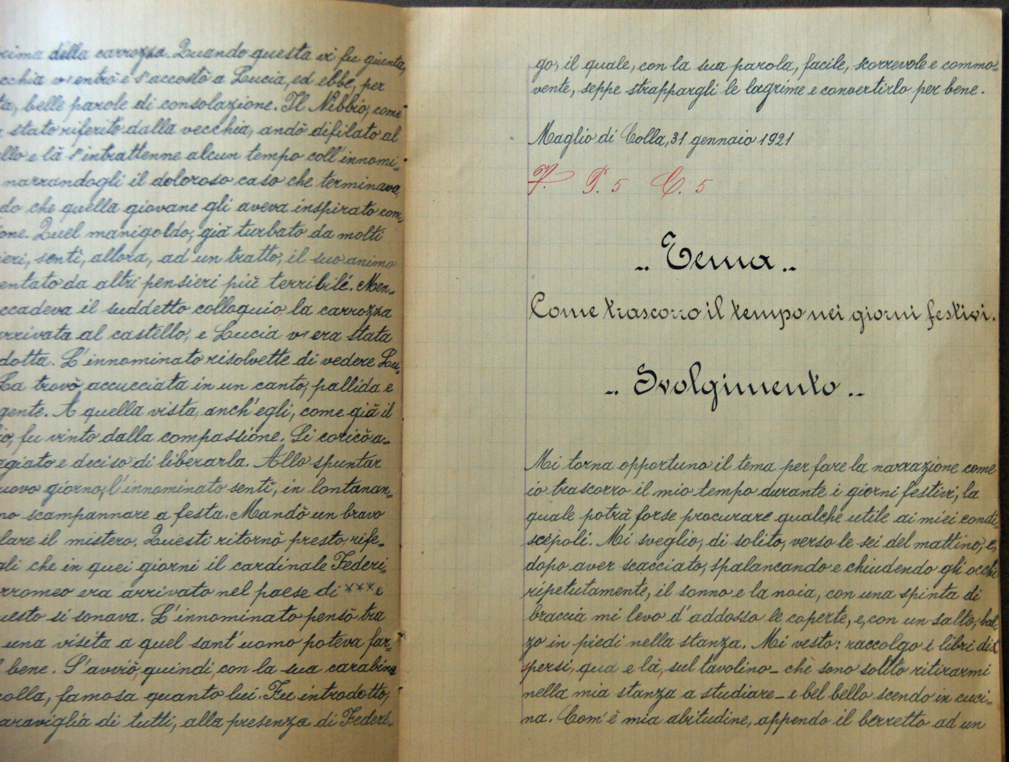 questa volta del 1921. Sono temi svolti da un allora ragazzo del Corso 3° (roba svizzera). Se siete d'accordo, mi comporto