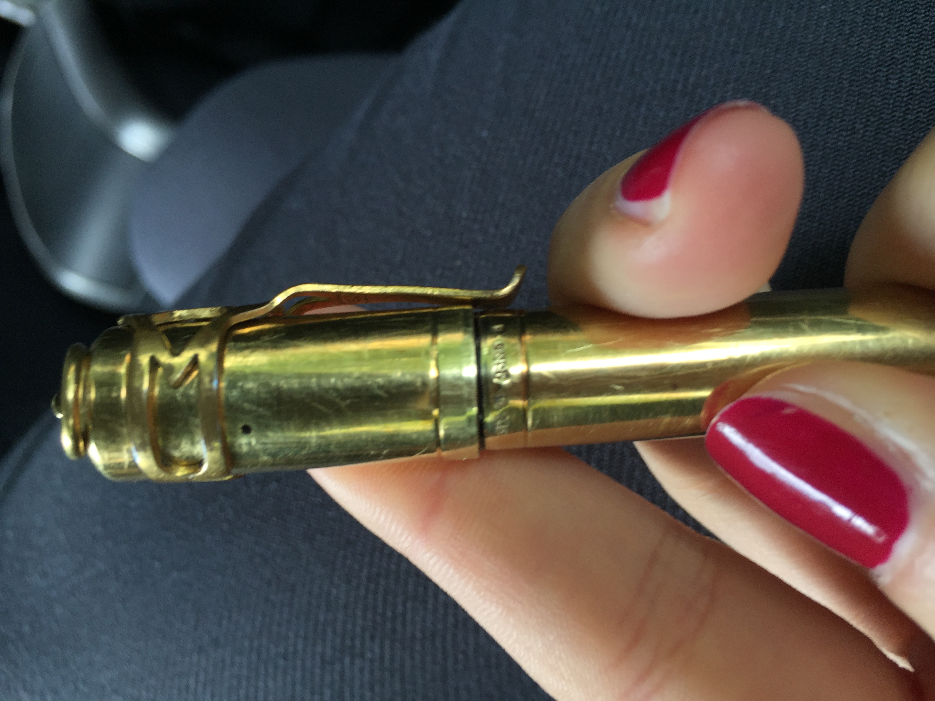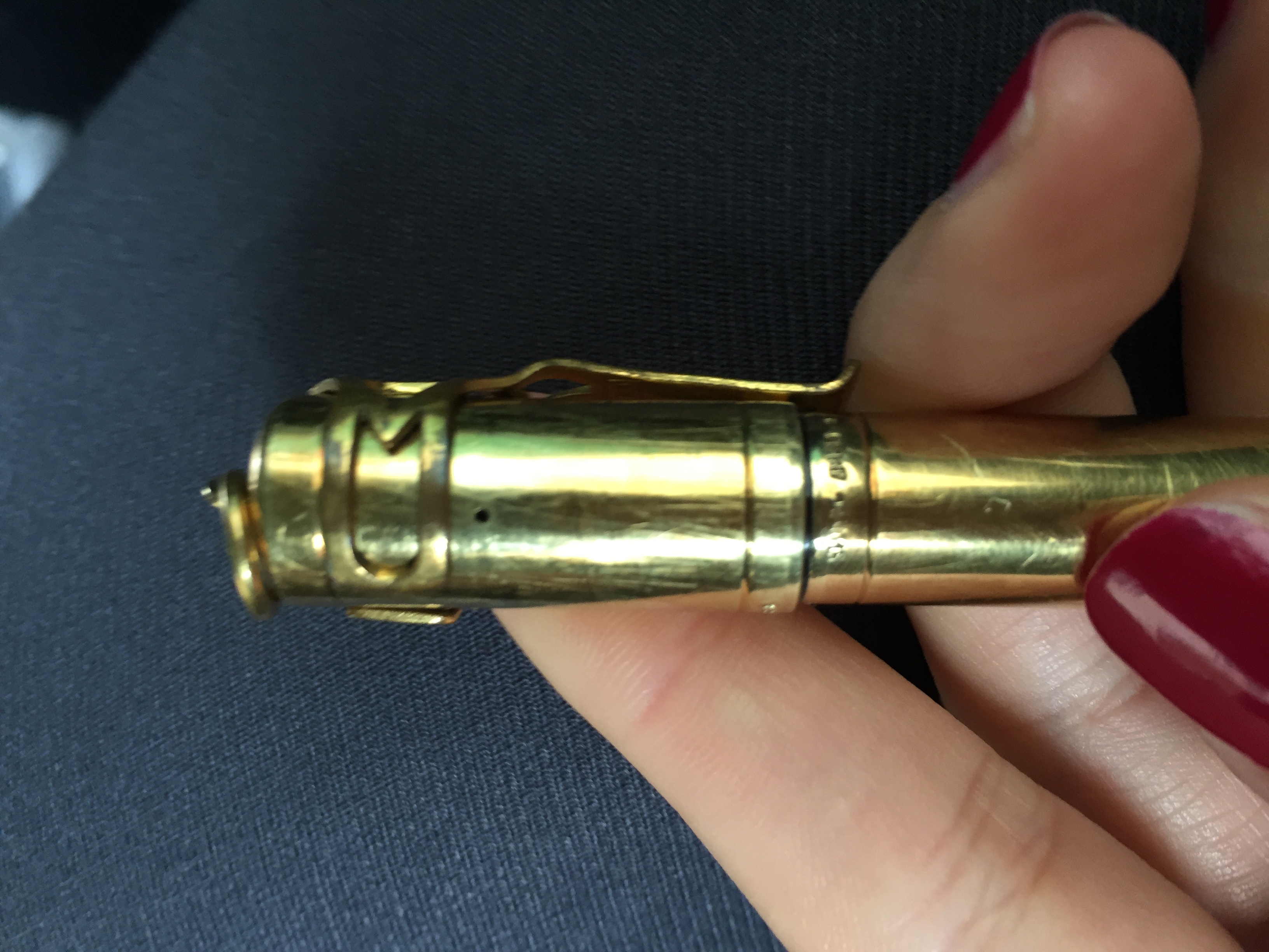 La penna è di piccole dimensioni con il corpo quasi completamente dorato, se non per l'estremità che è invece nera.