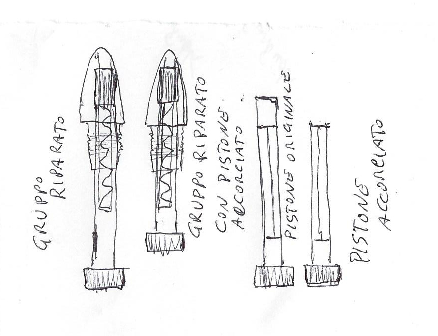 La fascia scura disegnata dentro al fondello è il punto di riparazione dove si ferma la salita del pistone limitando la carica dell' inchiostro.