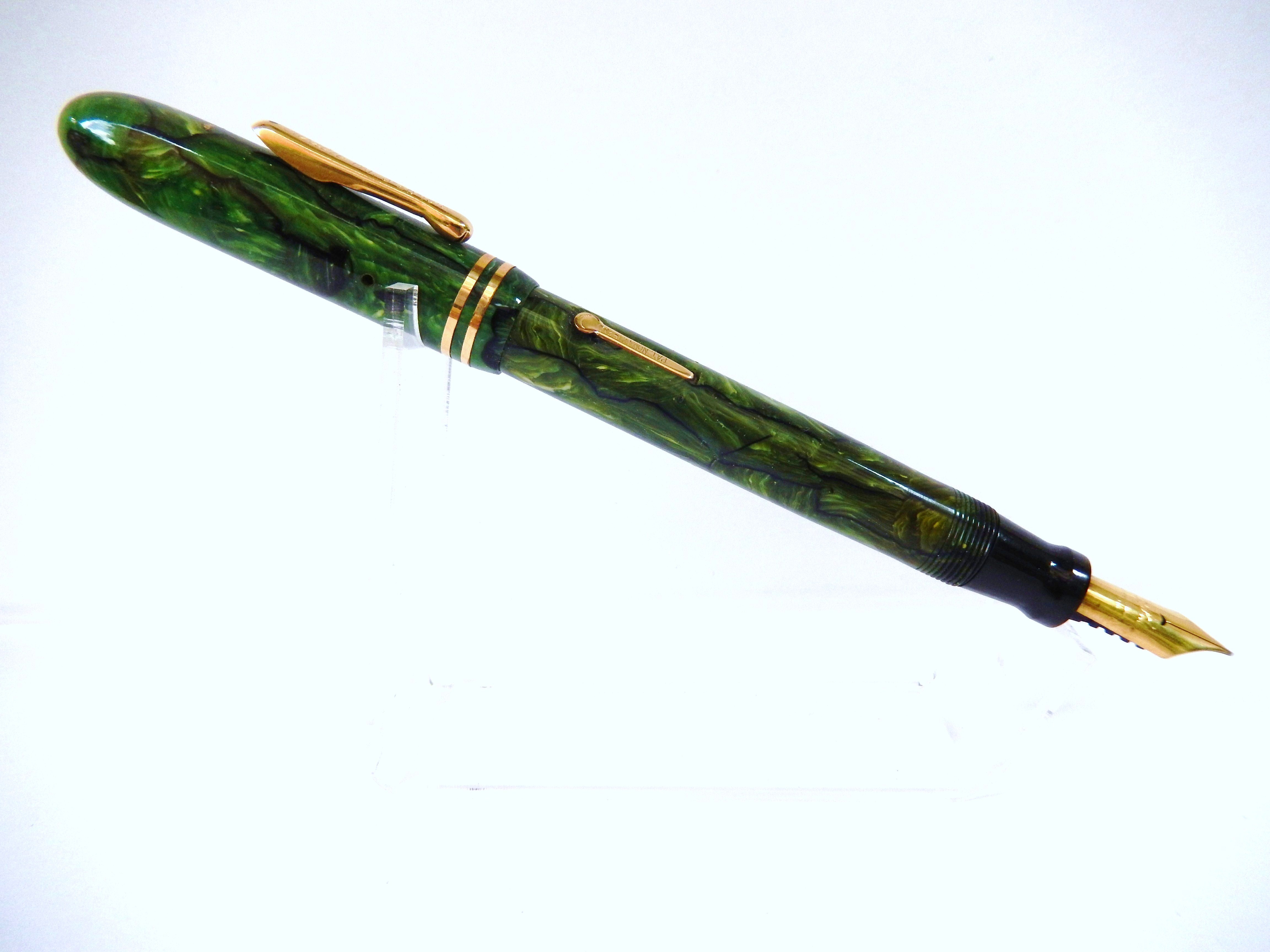 Grazie Ciro, giusta la tua supposizione: la Conklin aveva cominciato ad utilizzare materie plastiche già nel 1926 proprio con lo sapphire blue della Endura riprodotta in foto. Per quanto attiene al pennino deve trattarsi della consueta lega oro 14. Buona giornataciro ha scritto:Il verde è il mio colore preferito e questa penna è davvero bella.