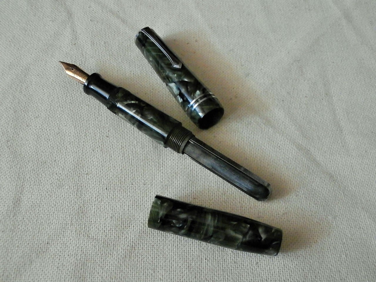 1- questa sembra nuova di pacca..... non ci sono segni di uso, celluloide e finiture perfette, scritta leggibilissima manca il riferimento al brevetto presente sulla B&P. Il serbatoio, anche se inutilizzabile perchè la gomma è ormai seccata, è come se fosse appena installato.